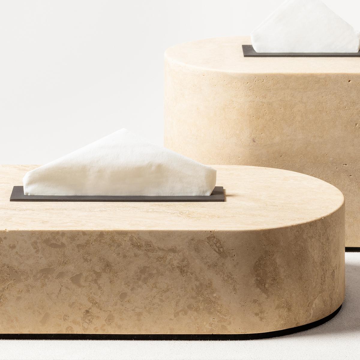 With the "Nobble" tissue boxes by GioBagnara, designer Glenn Sestig elevates an everyday essential into a sculptural design object. Defined by a monolithic volume and softly rounded geometry, the tissue boxes embodie architectural clarity and understated strength.