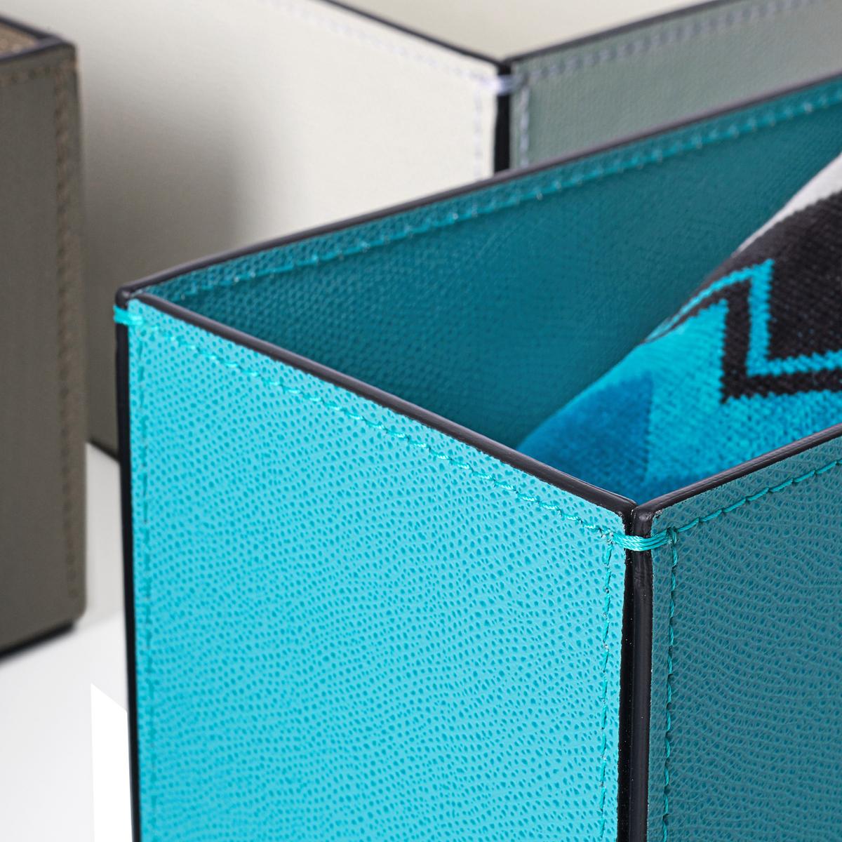 The "Suite" leather baskets from GioBagnara are real organization talents. They can be used for instance to store different bathroom utensils and face cloths. It is also perfect for storing other everyday items. The white stitching makes it look particularly refined as does the superb calf leather. The water and scratch proof leather surfaces makes these baskets from GioBagnara ideal for everyday use.