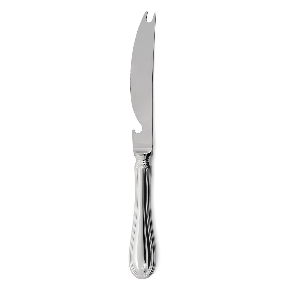 Enrich your bar with the silver-plated "Inglese" bar knife by Greggio. The multi-function knife is equipped with a bottle opener, a finely serrated stainless steel blade for cutting and peeling, and a forked tip for picking up garnishes. The handle is silver-plated with 999 fine silver and will fit harmoniously into any classic bar collection with its simple and elegant design.