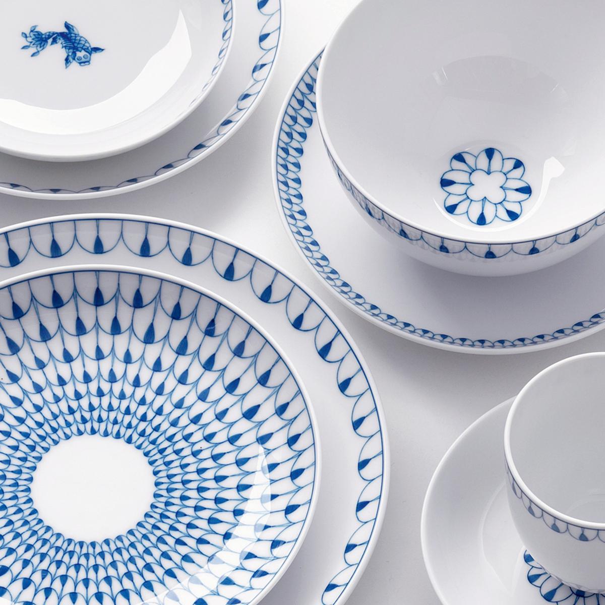 With its two designs "Ecaille" and "Carpe", Herend’s "Polka" tableware unites Fresian and Asian porcelain cultures in a very modern way. The porcelain plates, cups and bowls are decorated with graphic designs reminiscent of fish-scale patterns or paintings of koi carp in deep Fresian blue.