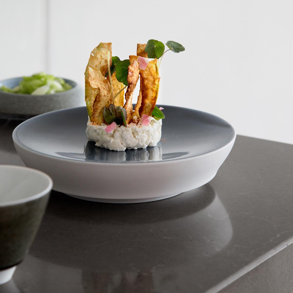 Deep blue meets dazzling white: The rims of the "Blue Silent" plates are made of smoothed silky matt, unglazed bisque porcelain and form a pleasant contrast to the iridescent blue colour glaze inside the plates. The lively high-fire glaze alternates in beautiful cobalt blue color shades.