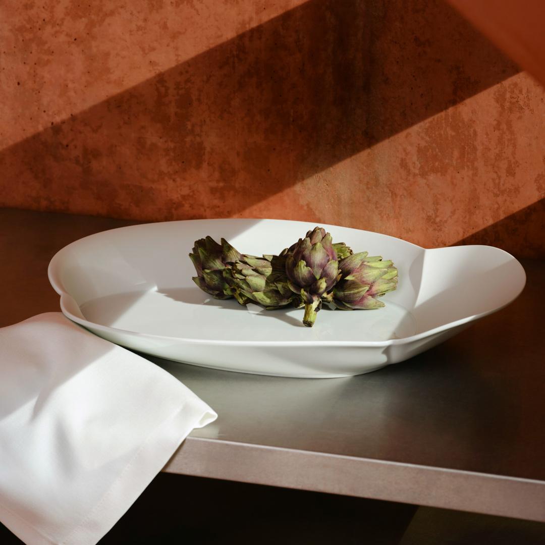 Discover porcelain on a new step of evolution. The "Evolution" collection by Hering Berlin adds a new dimension to the universe of the master porcelain manufacturer. Designer Stefanie Hering breaks with her usual, strict formal language by introducing hand-modelled, organic ribbed structures. Depending on the glaze colour and the food served on it, the biomorphic structures evoke perpetually new associations. Sometimes they look like flowers, vegetables, animals or water, sometimes they defy concrete interpretation – an invitation to culinary and visual experimentation.