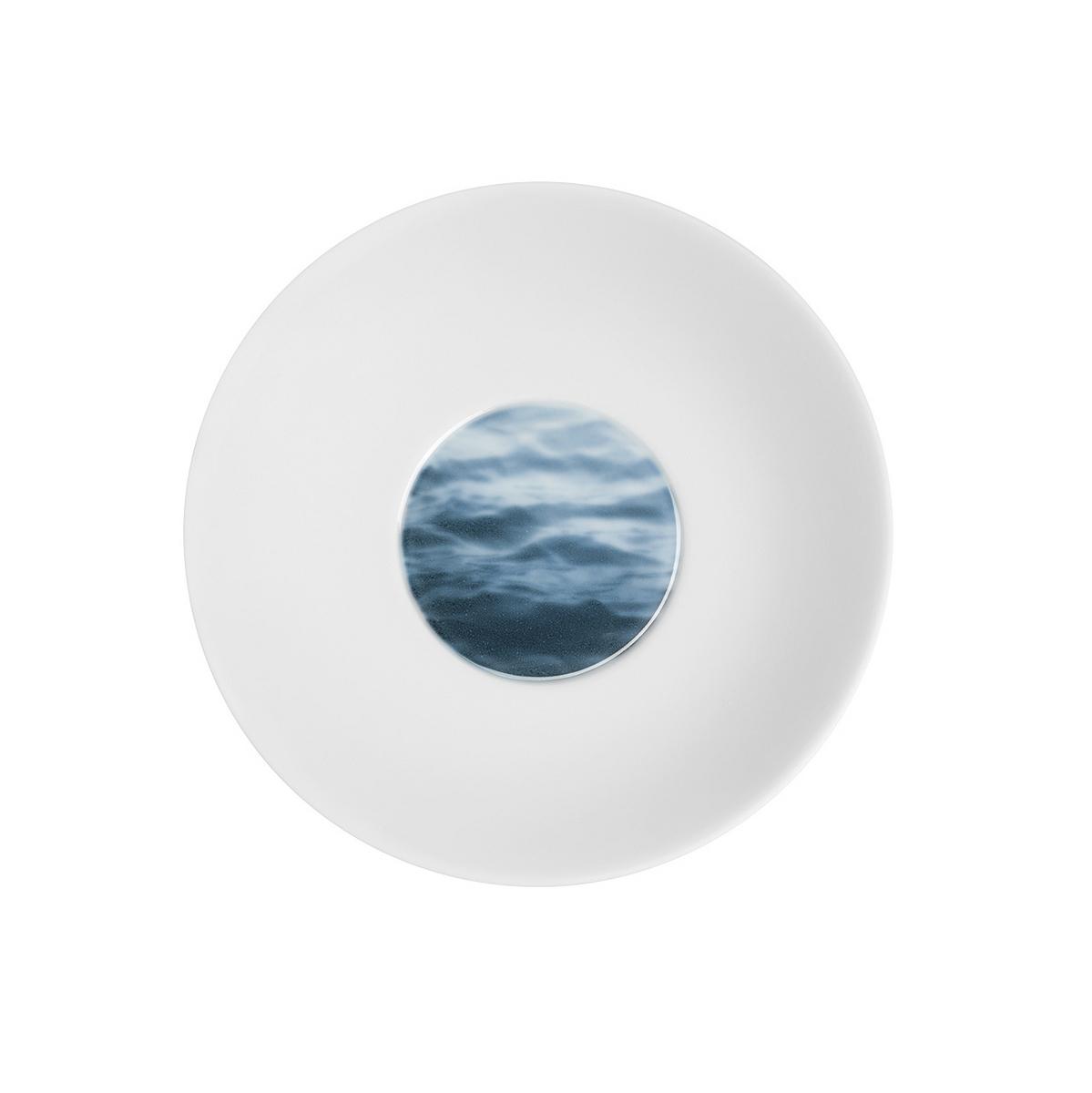Hering Berlin introduces an innovative technique to merge the printed wave pattern with the glaze, intensifying the contrasts between the shiny décor and the white bisque porcelain of the rims. The soft cloud decor, on the other hand, floats in powdery tones like the reflection of the sky on the matt bisque surfaces. Both decors invite you to mix and match creatively with other Hering Berlin dinner services to create deep blue tablescapes and sophisticated maritime concepts.
