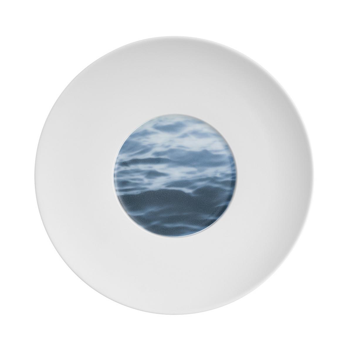 Hering Berlin introduces an innovative technique to merge the printed wave pattern with the glaze, intensifying the contrasts between the shiny décor and the white bisque porcelain of the rims. The soft cloud decor, on the other hand, floats in powdery tones like the reflection of the sky on the matt bisque surfaces. Both decors invite you to mix and match creatively with other Hering Berlin dinner services to create deep blue tablescapes and sophisticated maritime concepts.