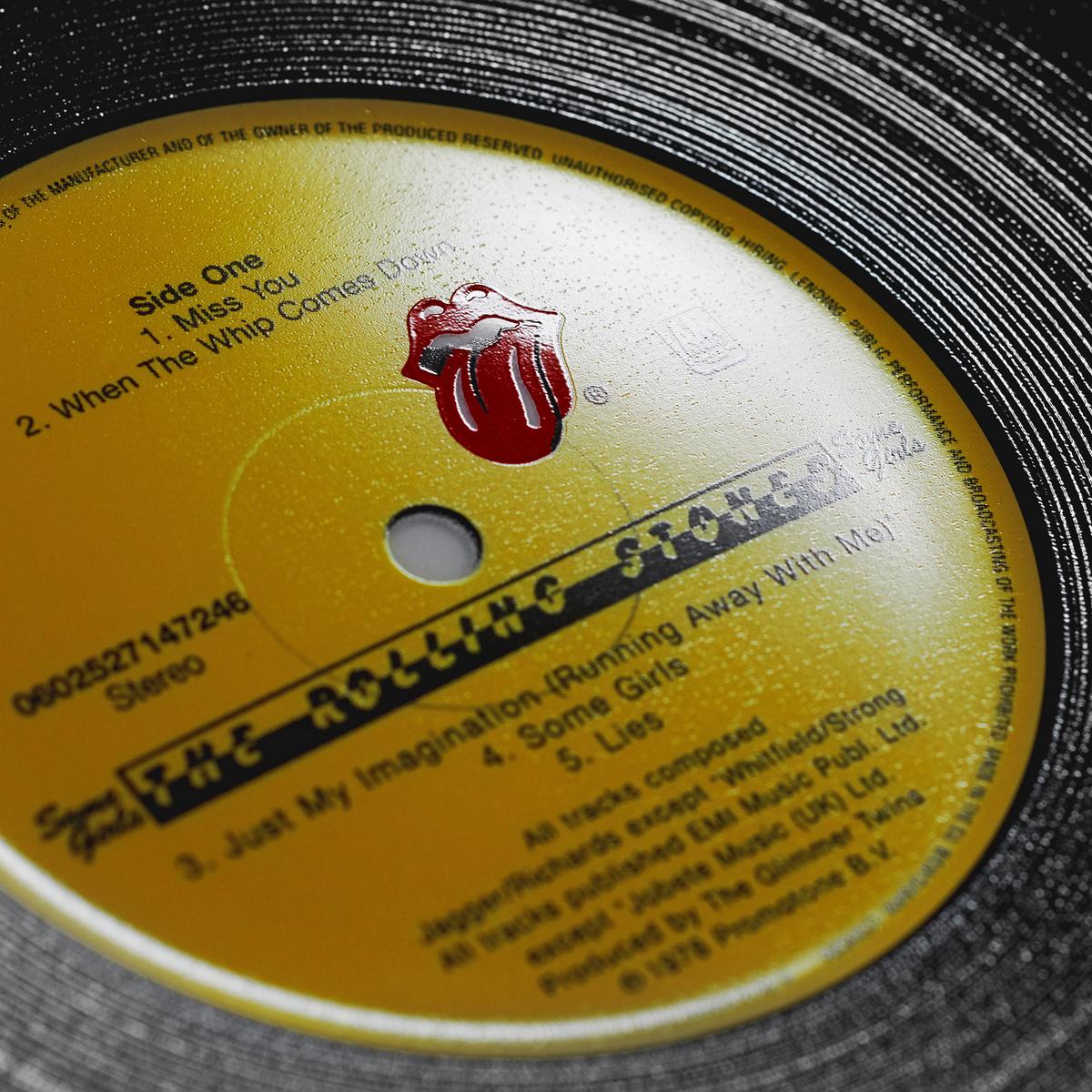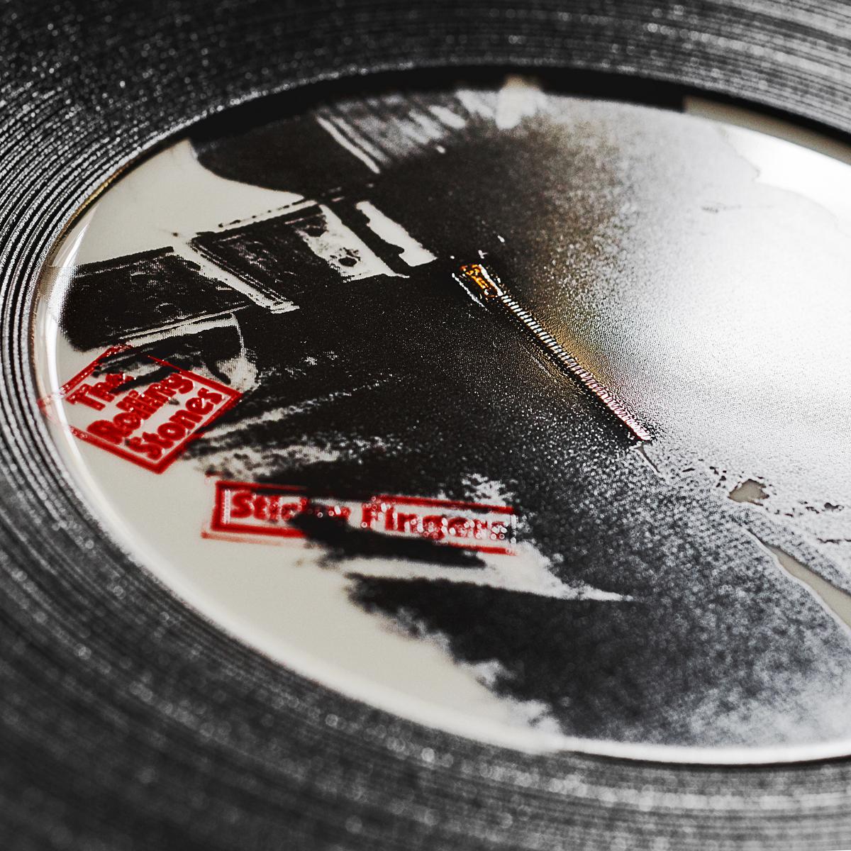 The elaborately designed set is full of surprises. Even the smallest details of the original album covers can be seen on the large plates. The zip on "Sticky Fingers" is additionally highlighted with a light relief and a touch of gold. The record labels on the smaller plates are so vividly rendered that one could mistake the imprinted centre holes for real. Even the protective foils between the plates bear the famous tongue logo.