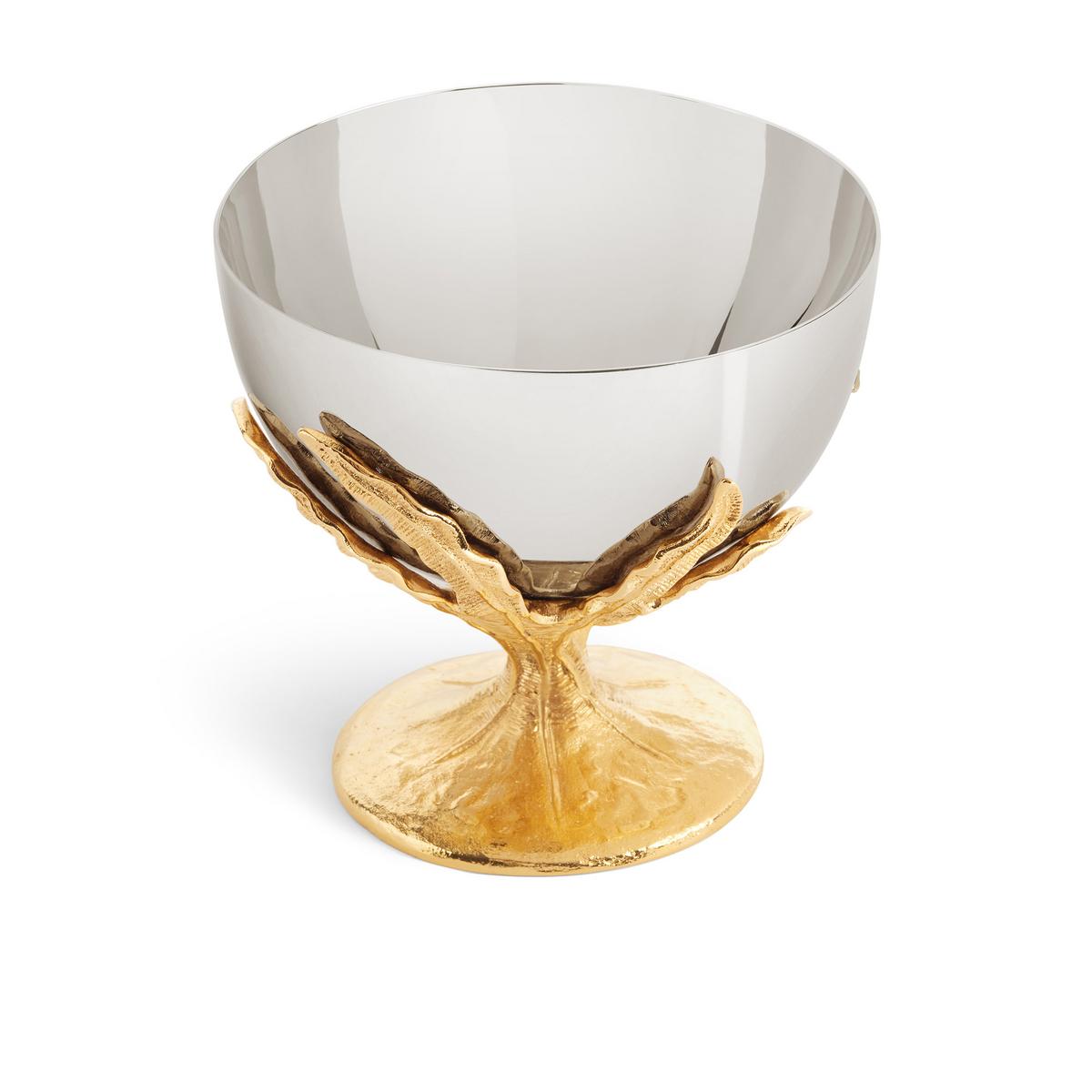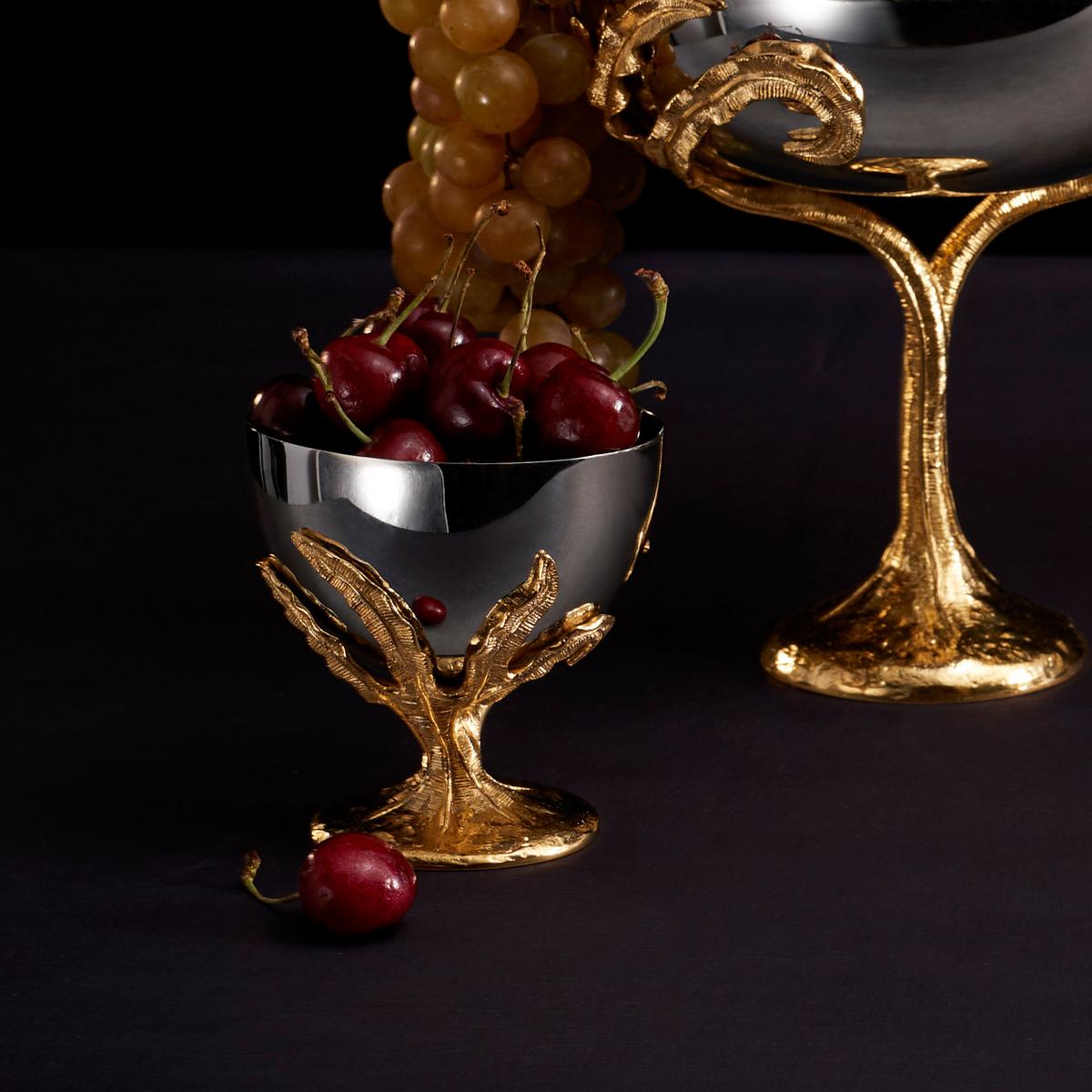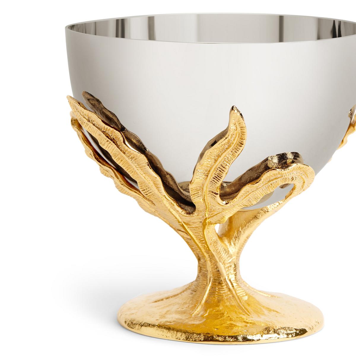 A celebration of the elegance of nature. The "Fern" footed cup by L'Objet is a timeless design for sophisticated tables. The sensual curves of the hand forged stainless steel bowl balance on gold-plated fern leaves that cleverly form the low foot. Serve fresh fruit or sweet ice cream creations in the stylish bowls to create unforgettable dining moments.