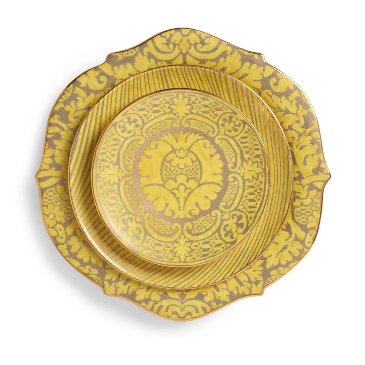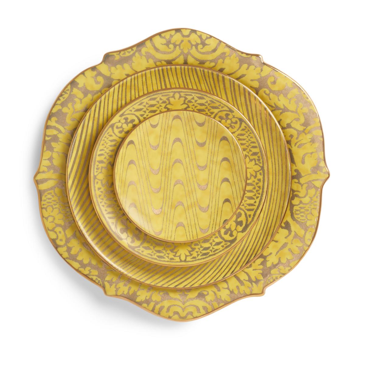 With "Fortuny Yellow", L’Objet expands its iconic "Fortuny" collection in a radiant new hue. The warm sunlit yellow tones, enriched with textured 24-karat gold accents, bring brightness and modern charm to the table while preserving the intricate detail that defines the series.