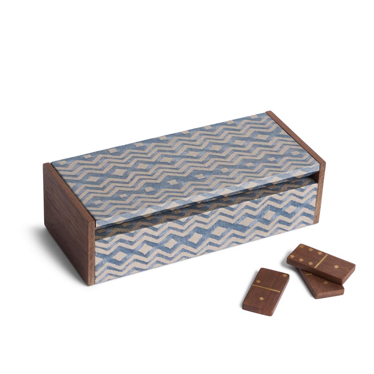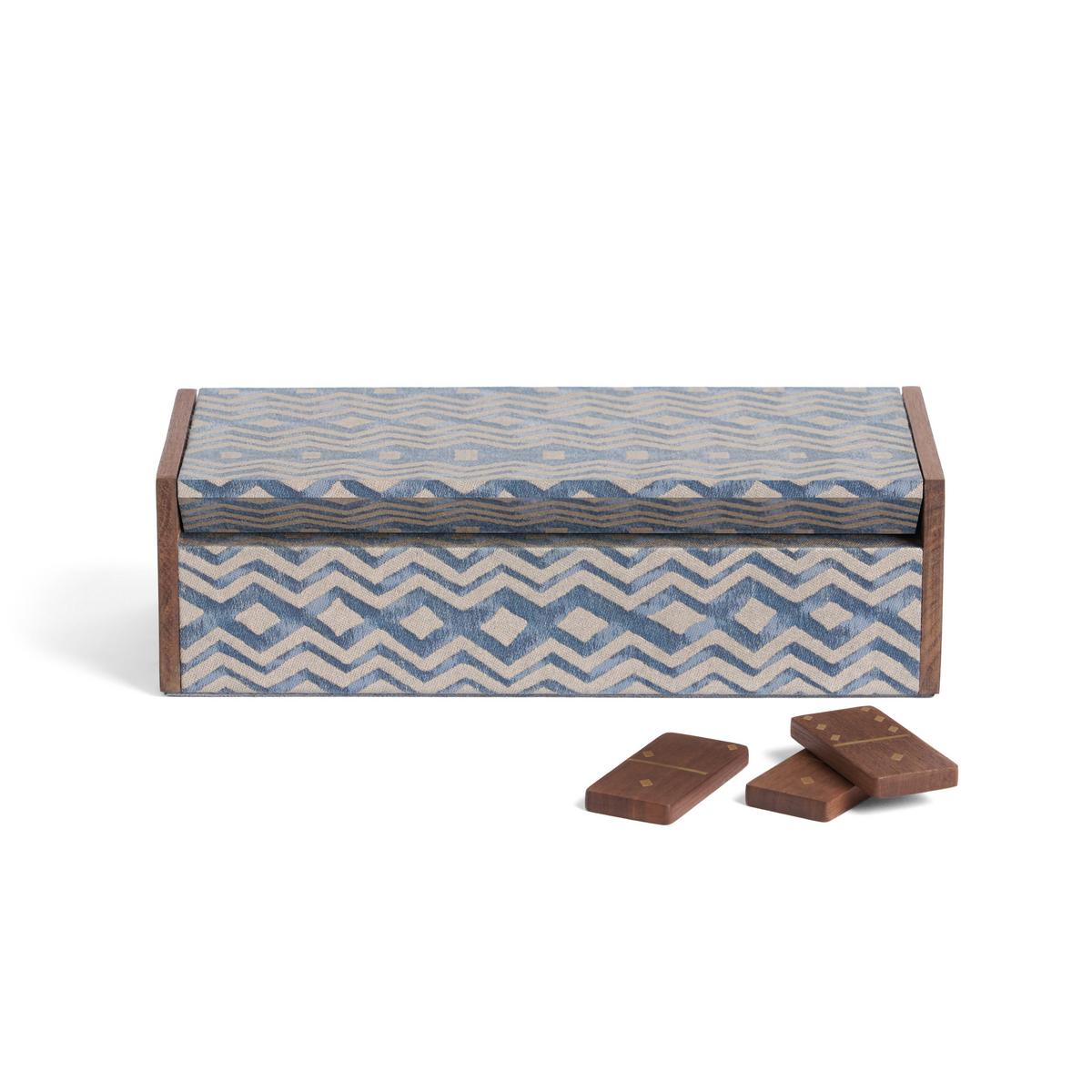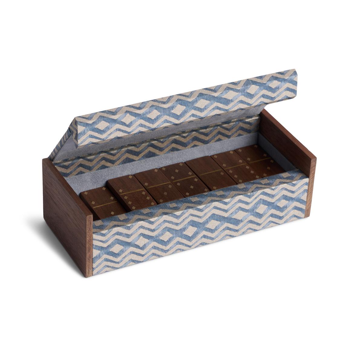 The "Fortuny" domino set by L’Objet celebrates the art of refined play. Each piece is handcrafted in walnut wood with brass inlays and diamond-shaped dots, combining precision with timeless beauty.
