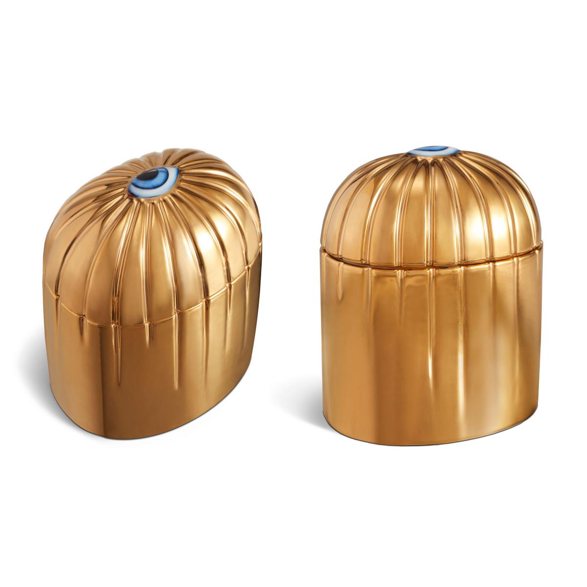 The "Lito" scented candles by L'Objet not only convince with their beguiling vetiver scent and a fresh woody note, but they are also a decorative highlight. The candle containers are made of fine porcelain, refined with 24 carat gold and are available in either blue, green or gold. A fascinating eye design is painted on the lid of L'Objet's scented candles "Lito" so that even after the candles have burnt out you will still enjoy the box.
