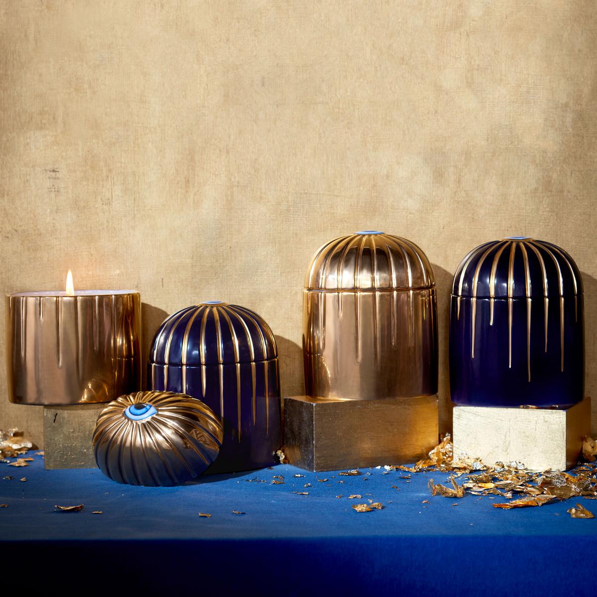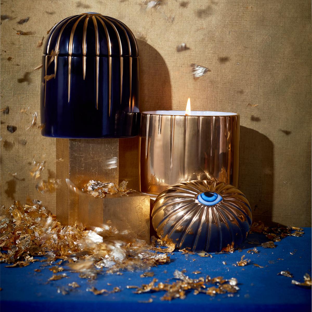 The "Lito" scented candles by L'Objet not only convince with their beguiling vetiver scent and a fresh woody note, but they are also a decorative highlight. The candle containers are made of fine porcelain, refined with 24 carat gold and are available in either blue, green or gold. A fascinating eye design is painted on the lid of L'Objet's scented candles "Lito" so that even after the candles have burnt out you will still enjoy the box.