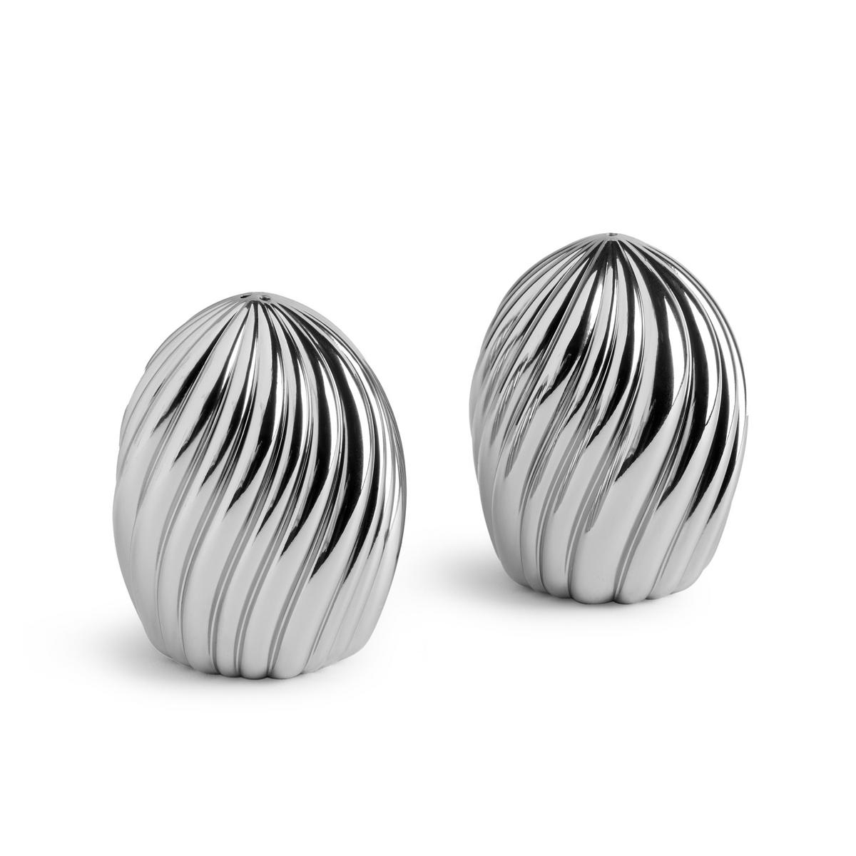 Salt and pepper shakers that makes waves. The "Ripple" salt and pepper shakers by L'Objet capture the vibe of the 70s with a groovy ripple effect. Choose from a 24-carat gold-plated or platinum finish to find the perfect jewellery for your dining table.