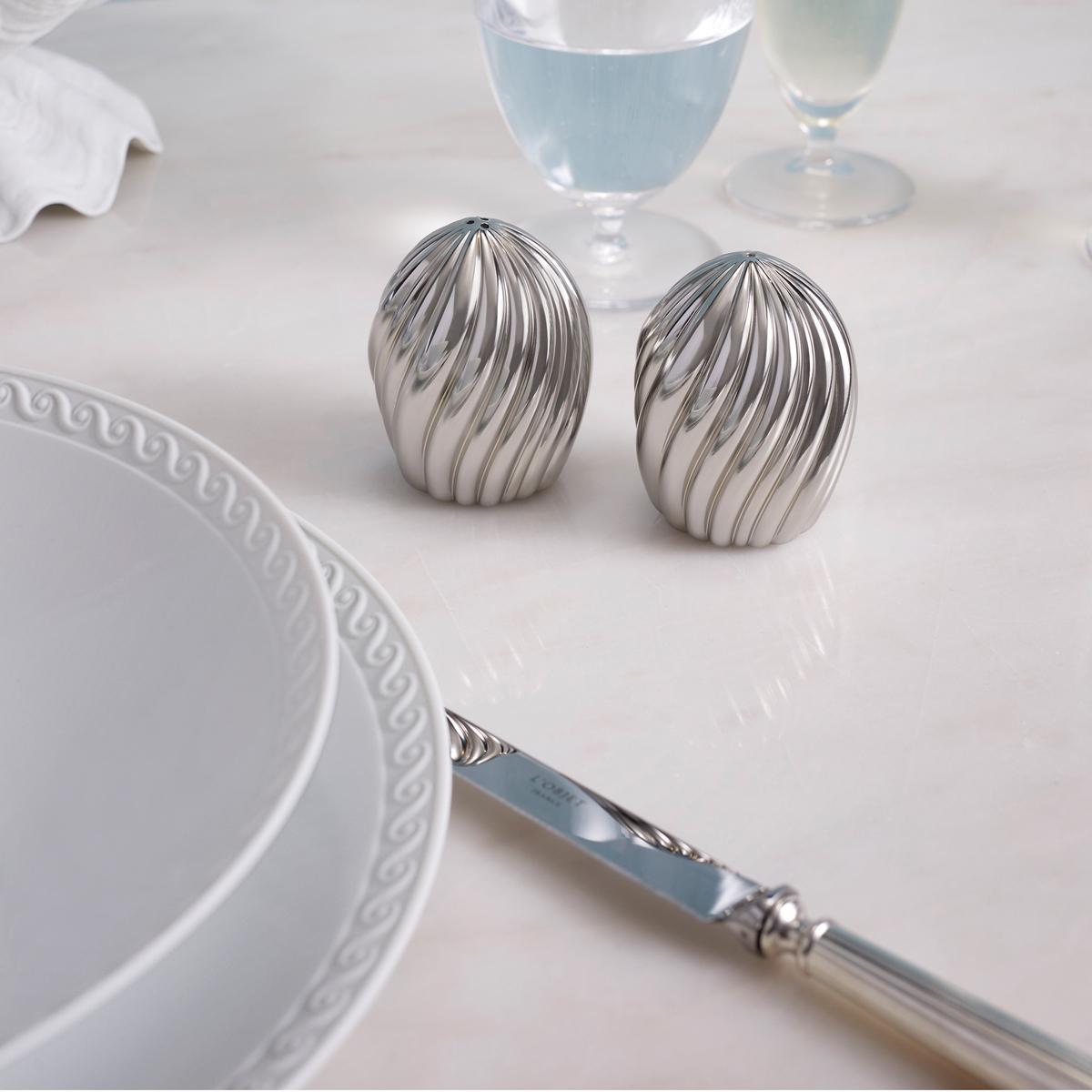 Salt and pepper shakers that makes waves. The "Ripple" salt and pepper shakers by L'Objet capture the vibe of the 70s with a groovy ripple effect. Choose from a 24-carat gold-plated or platinum finish to find the perfect jewellery for your dining table.