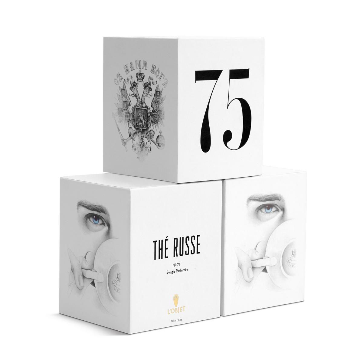 The top note of the fragrance no. 75 "Thé Russe" is the fragrance of fresh lemon and spicy coriander, the heart note is of hay combined with beeswax and milky accents, and the base note is a mix of patchouli, amber and leather.