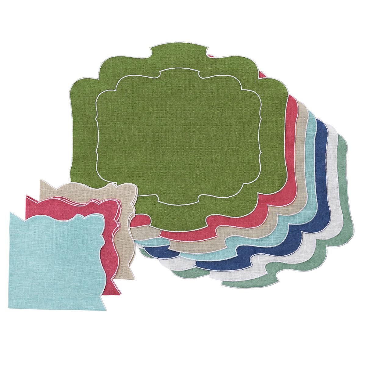 With verve, style, and imagination, the "Parentesi" table linens by La Gallina Matta celebrate the beauty of geometric harmony. The placemats’ distinctive scalloped silhouettes catch the eye at once, while their refined texture invites you to reach out and touch. Delicate white stitching accentuates the sophisticated colours La Gallina Matta has carefully created for contemporary table settings. Thanks to a special coating, the placemats are easy to clean with a damp cloth and are suitable for both indoor and outdoor use.
