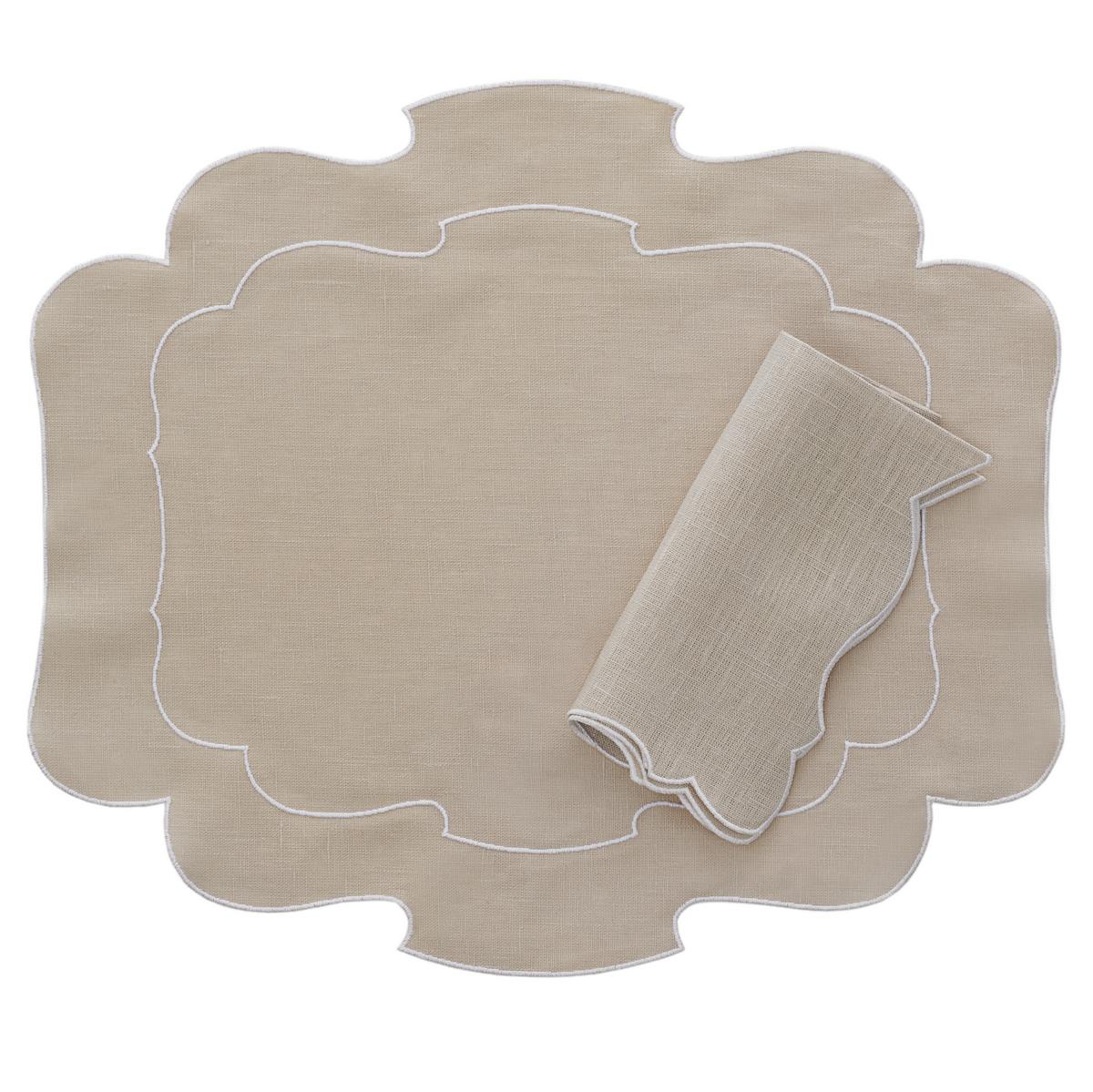 The square "Angelina" linen napkins complete the collection in coordinating colours. On request, the stitching colours can be customized to suit your taste—from subtle tone-on-tone to bold contrasting shades. We will be happy to advise you.