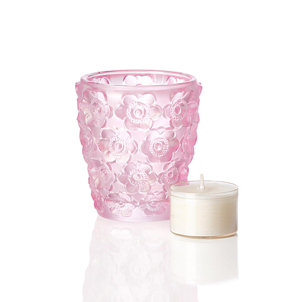 The flickering light of the candle softly captures the three-dimensional structure of the votive sending light in all directions. The "Anemones" pink votive is delivered in a high-quality Lalique Box and makes an ideal present.