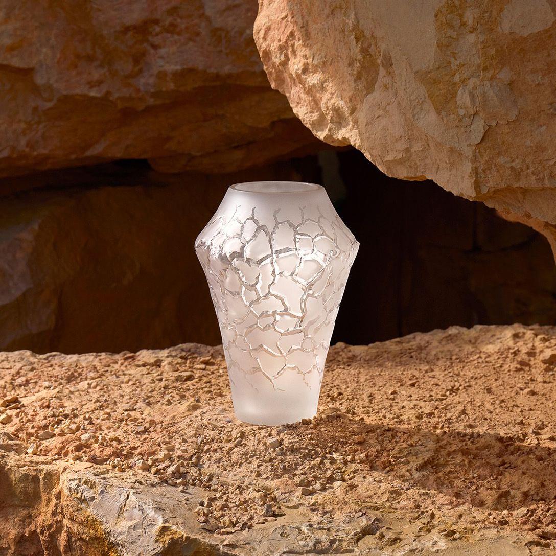 The "Caldera" vases are part of the "Terramineral" collection, a tribute to the forces of nature and the four elements. The combination of natural surface textures and flawless crystal creates a poetic balance of opposites: powerful and fragile, raw and elegant, an eternal movement frozen in crystal. Authentic and timeless, the collection is an ode to the elegance of nature that expresses all of Lalique's expertise.