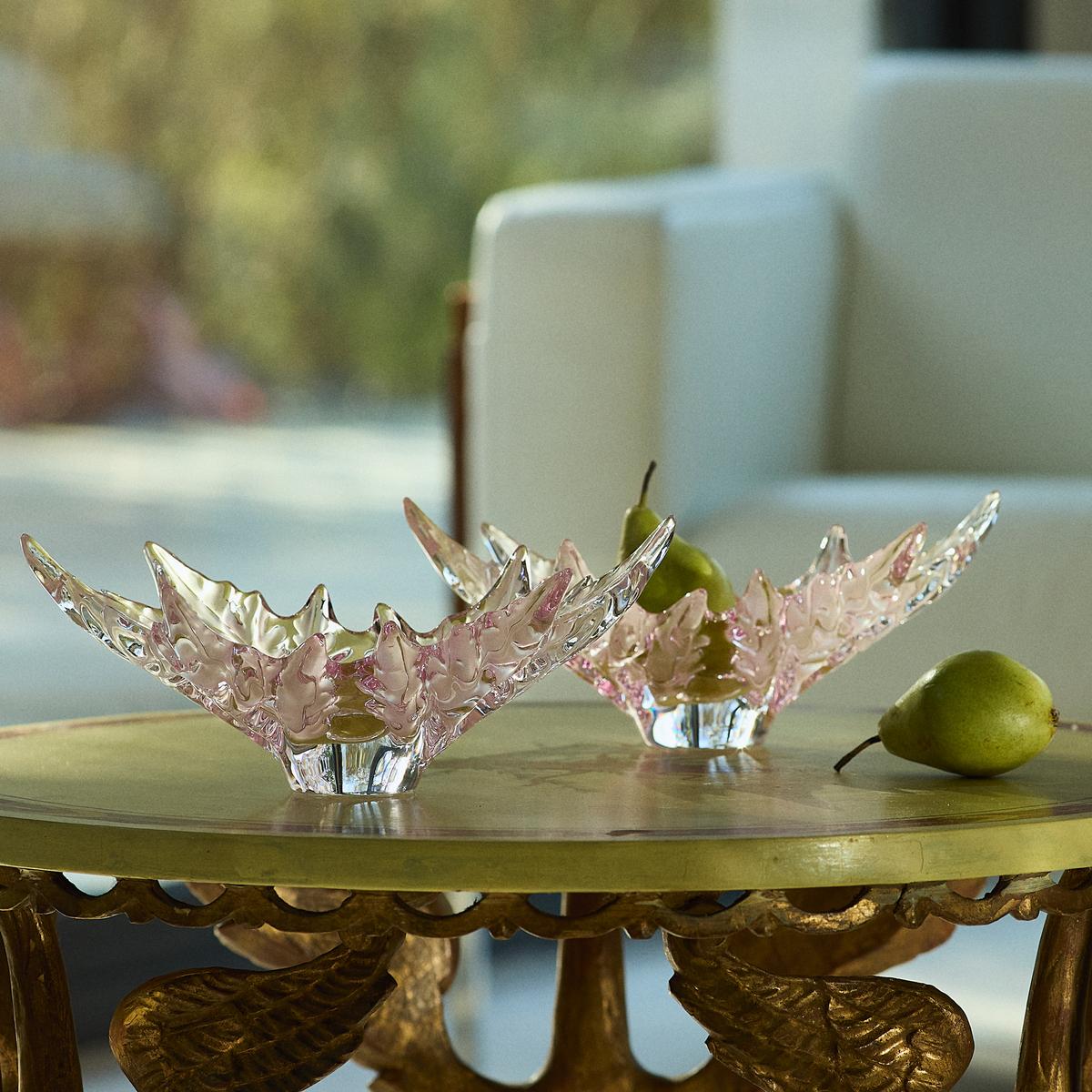 René Lalique became famous because, unlike any other glass designer, he was able to capture nature within his creations. The "Champs-Elysées" bowls are perfect examples of Lalique’s craftsmanship. They look as if they are chestnut leaves that have somehow turned into crystal glass, and yet nature merely supplied the pattern. The edges of the glass leaves curl gently upwards so that they can retain any little delicacies placed in the bowl.