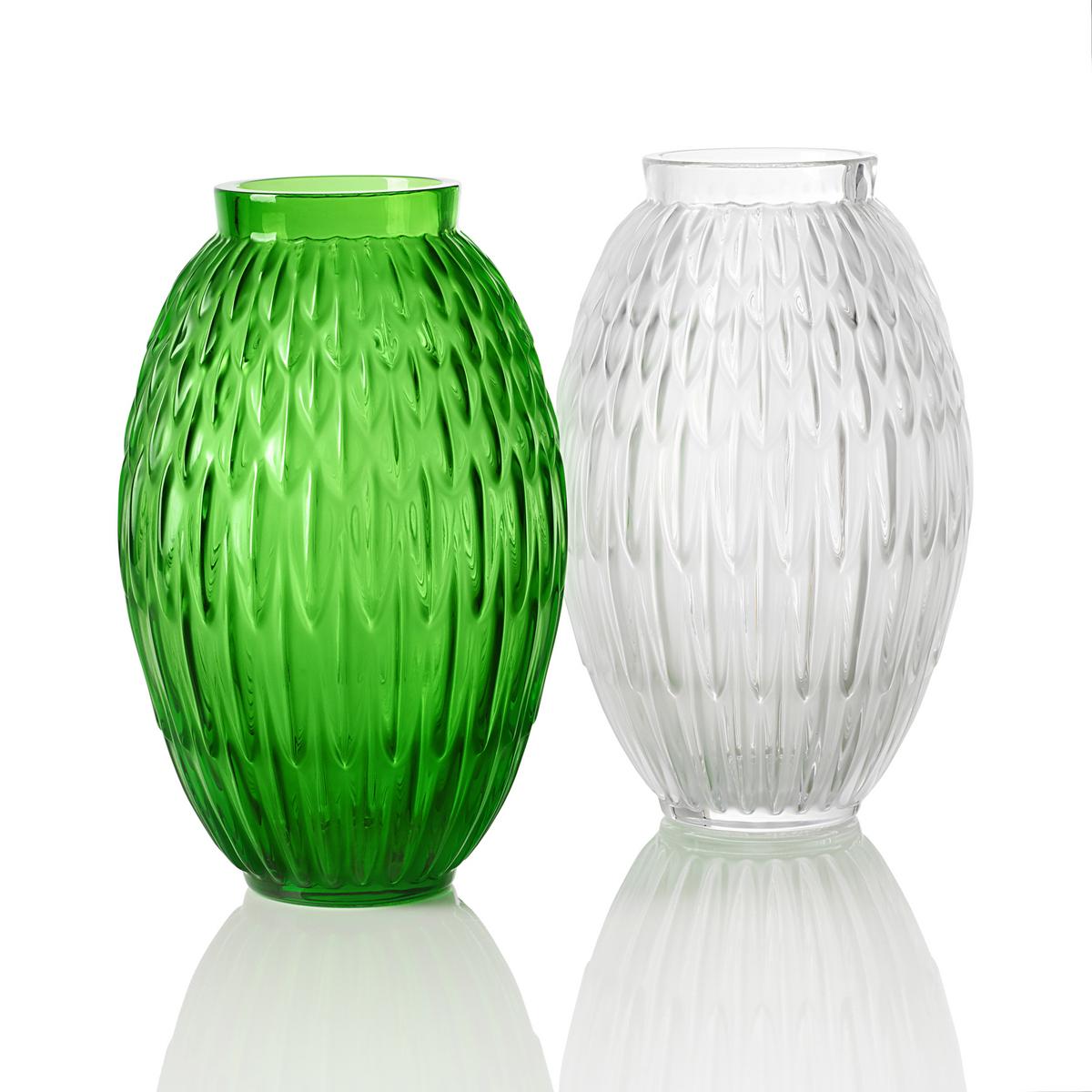 "Plumes" vases, H 26,5 cm by Lalique