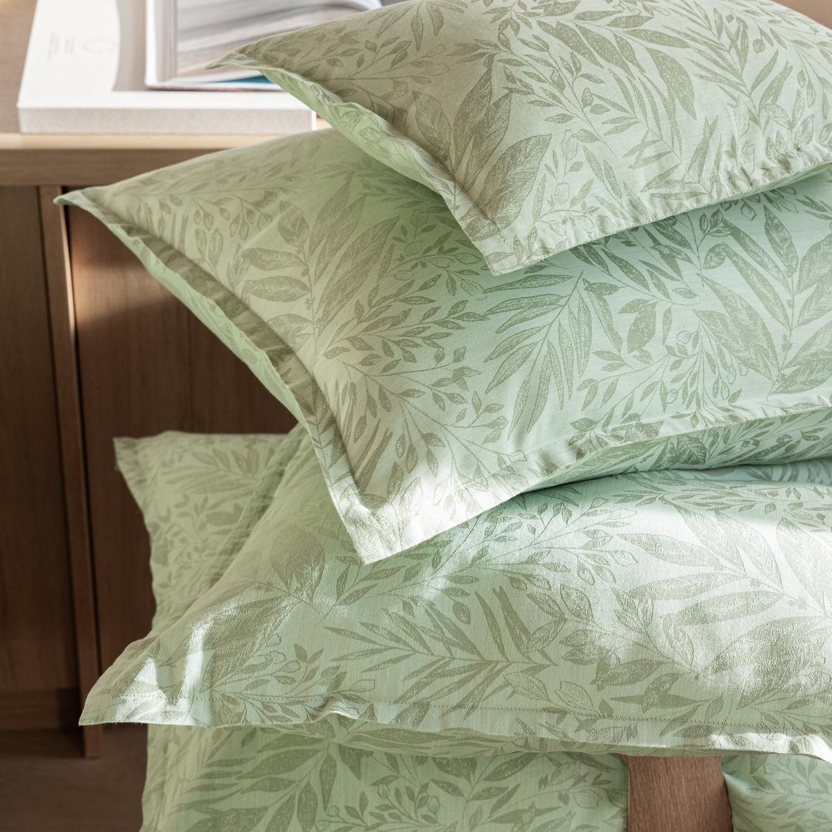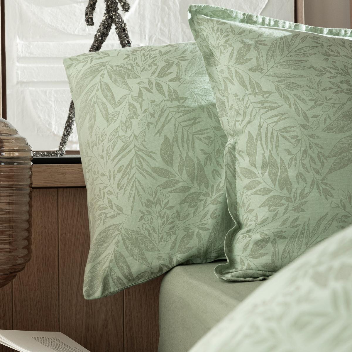 The "Charmilles" bed linen from Le Jacquard Francais conveys comfort and charm. It is made from cotton jacquard in the colours water green and khaki and the fresh design has a calming opulence.