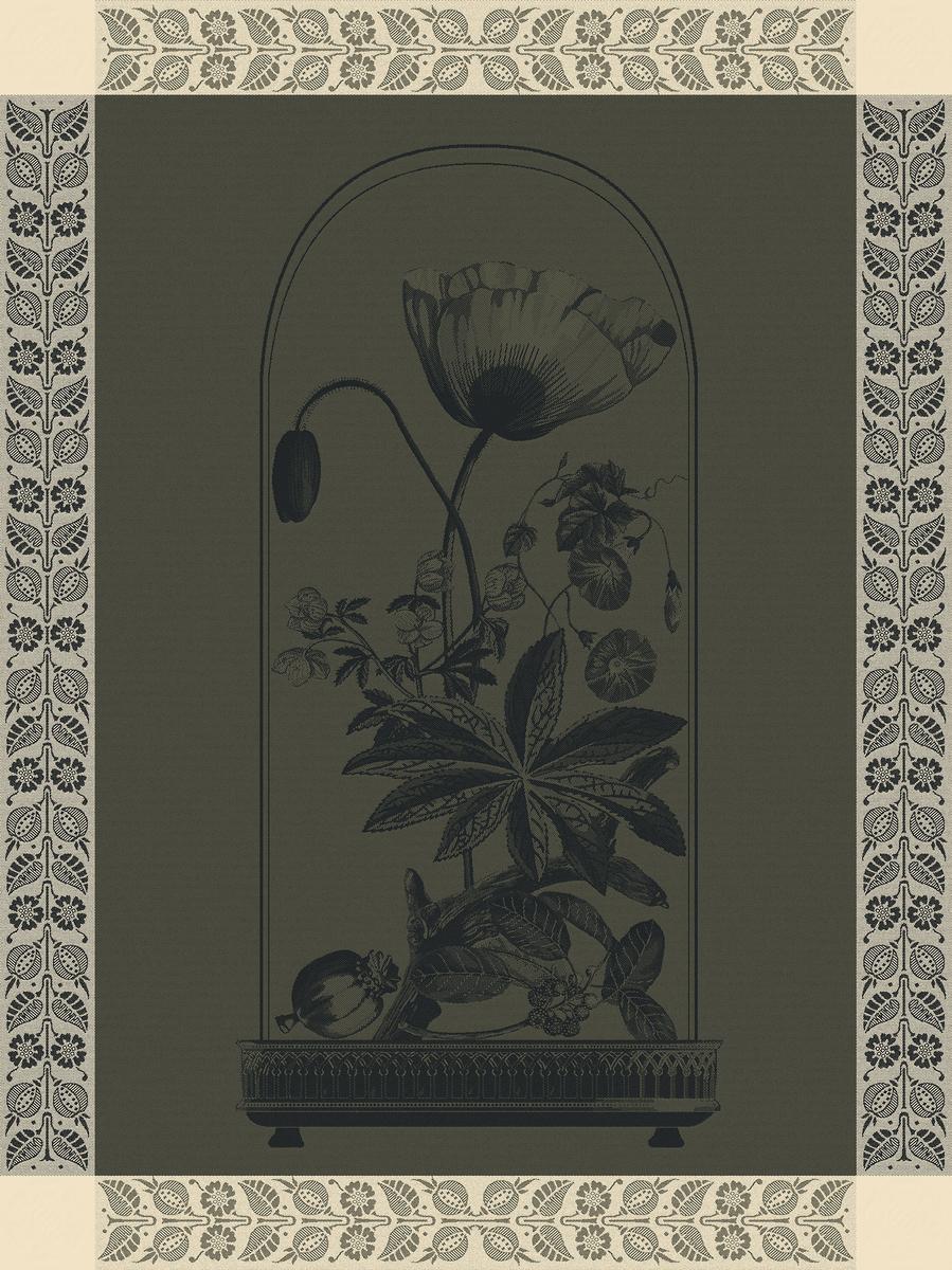 Celebrate nature with the "Curiosités" tea towels by Le Jacquard Francais. "Curiosités", a collection that comes to life like a veritable cabinet of curiosities, where decorative glass bells celebrate nature. This sublime damask tea towel, absorbent because it's made of pure cotton, and its dark colors will plunge you into a confidential and distinguished atmosphere in any season.