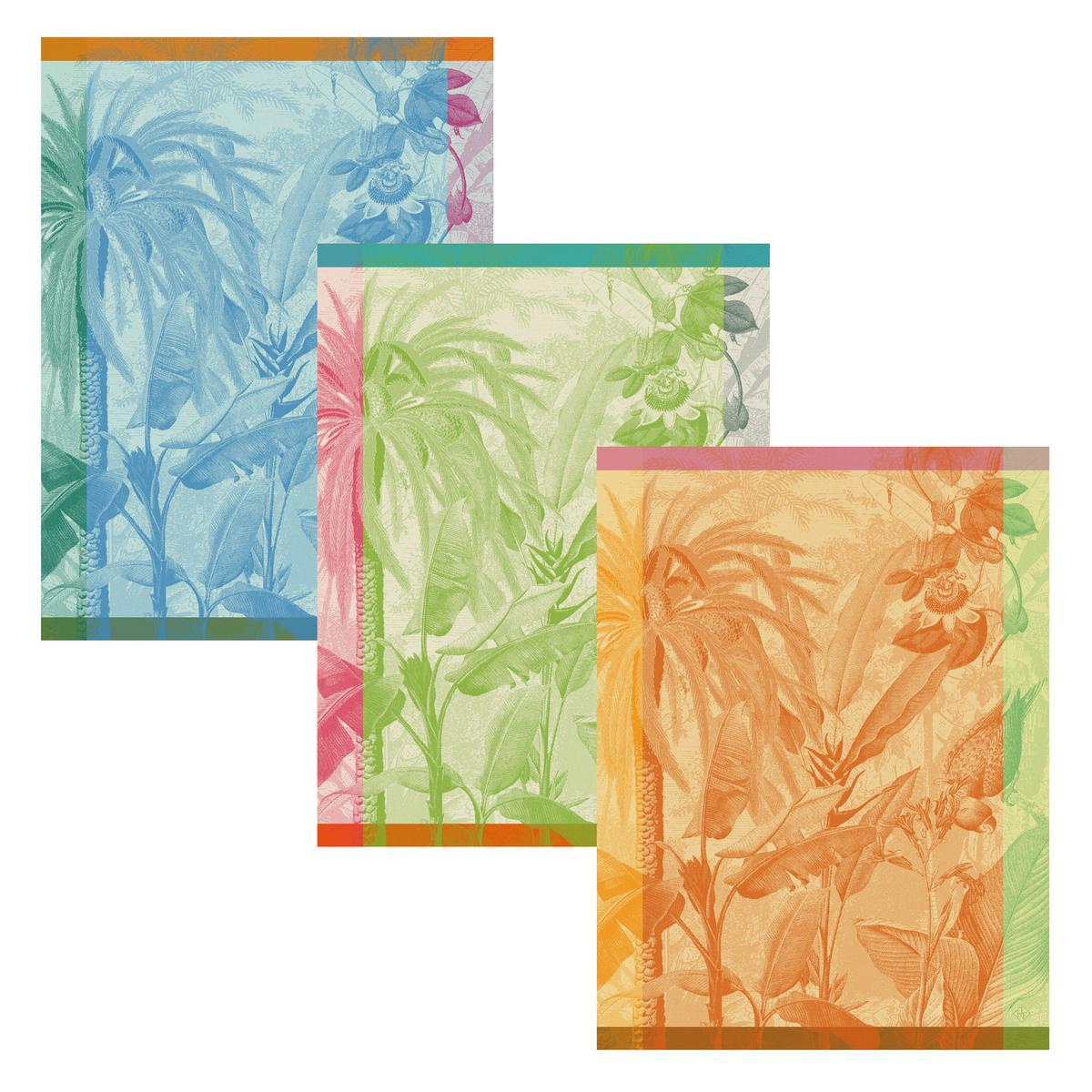 The "Equateur" tea towels from Le Jacquard Francais invite you to immerse yourself in the rainforest and take an unforgettable exotic journey amidst a colourful panoramic landscape.