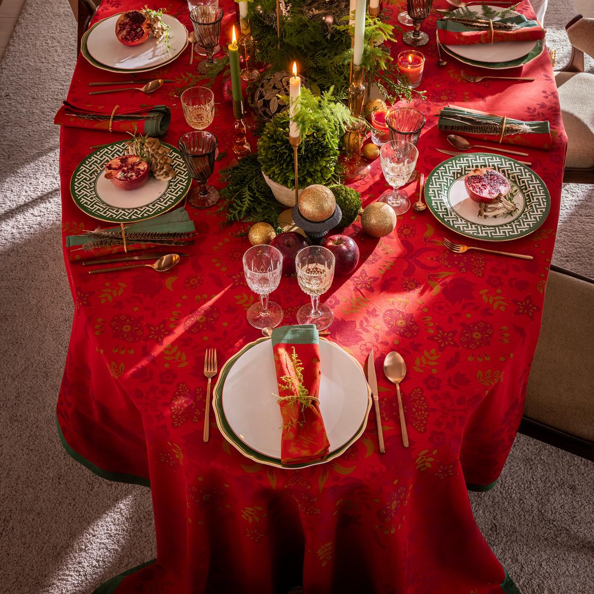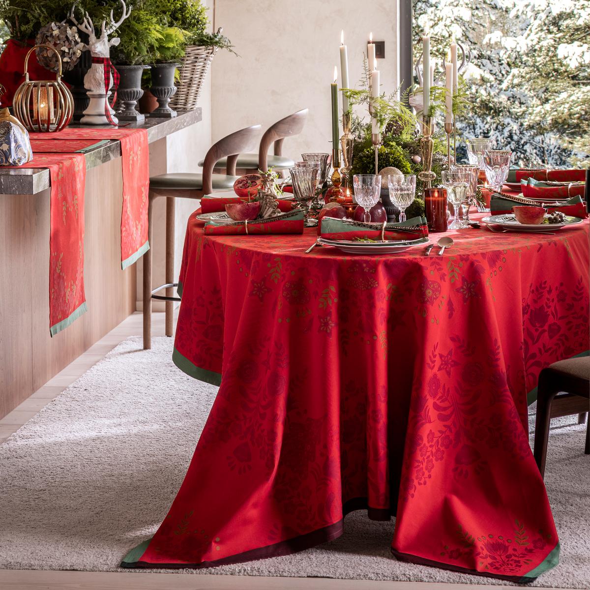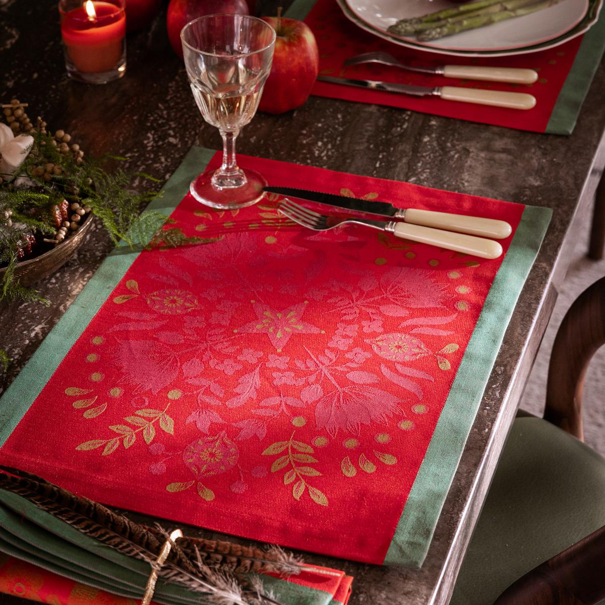 The vibrant red, highlighted with a contrasting green border, makes "Féerie" from Le Jacquard Francais the perfect centerpiece for your festive table. It combines warmth, elegance, and seasonal spirit, turning every meal into a memorable celebration.