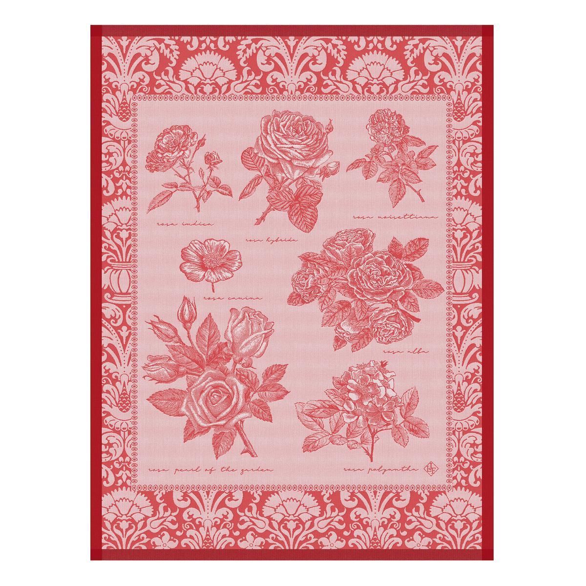 The "Jardin des Roses" tea towels from Le Jacquard Francais bring beautiful roses into your kitchen. In the form of a botanical tableau, the "Jardin des roses" collection illustrates a delicate and fragrant inventory of old roses native to Asia. Each tea towel has a woven label on which it can be hung.
