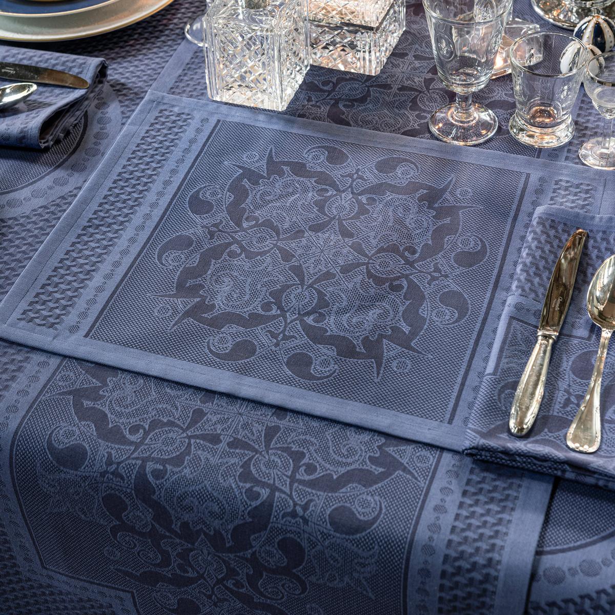 "Palais Venitien" table linen, blue by Le Jacquard Français