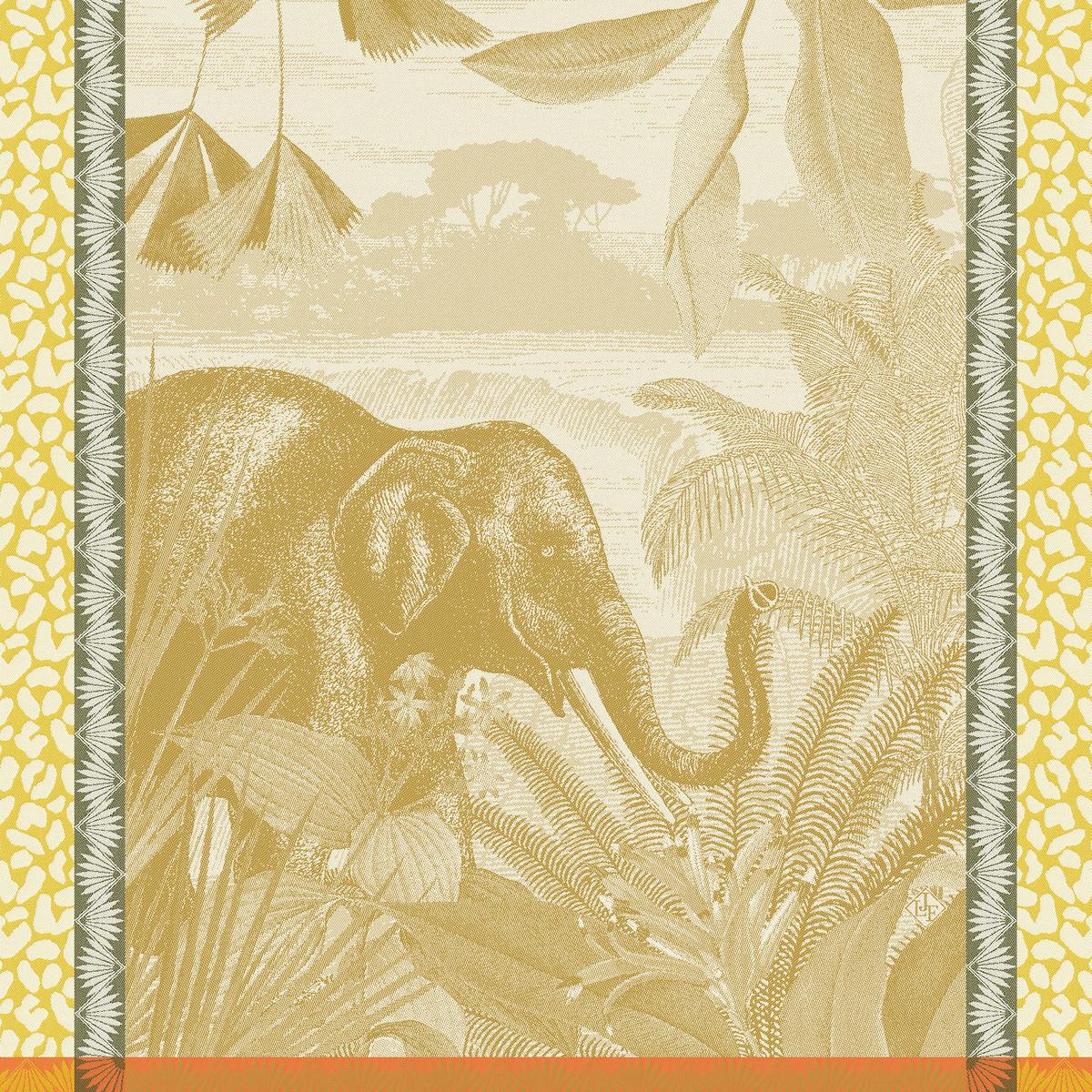 A majestic elephant in soft colours drapes across the fabric of the "Sinharaja" tea towels from Le Jacquard Francais, evoking the tranquillity and beauty of tropical landscapes. Inspired by the diversity of Sri Lanka - from tea plantations to lush jungle - this design brings a touch of the exotic into the kitchen.