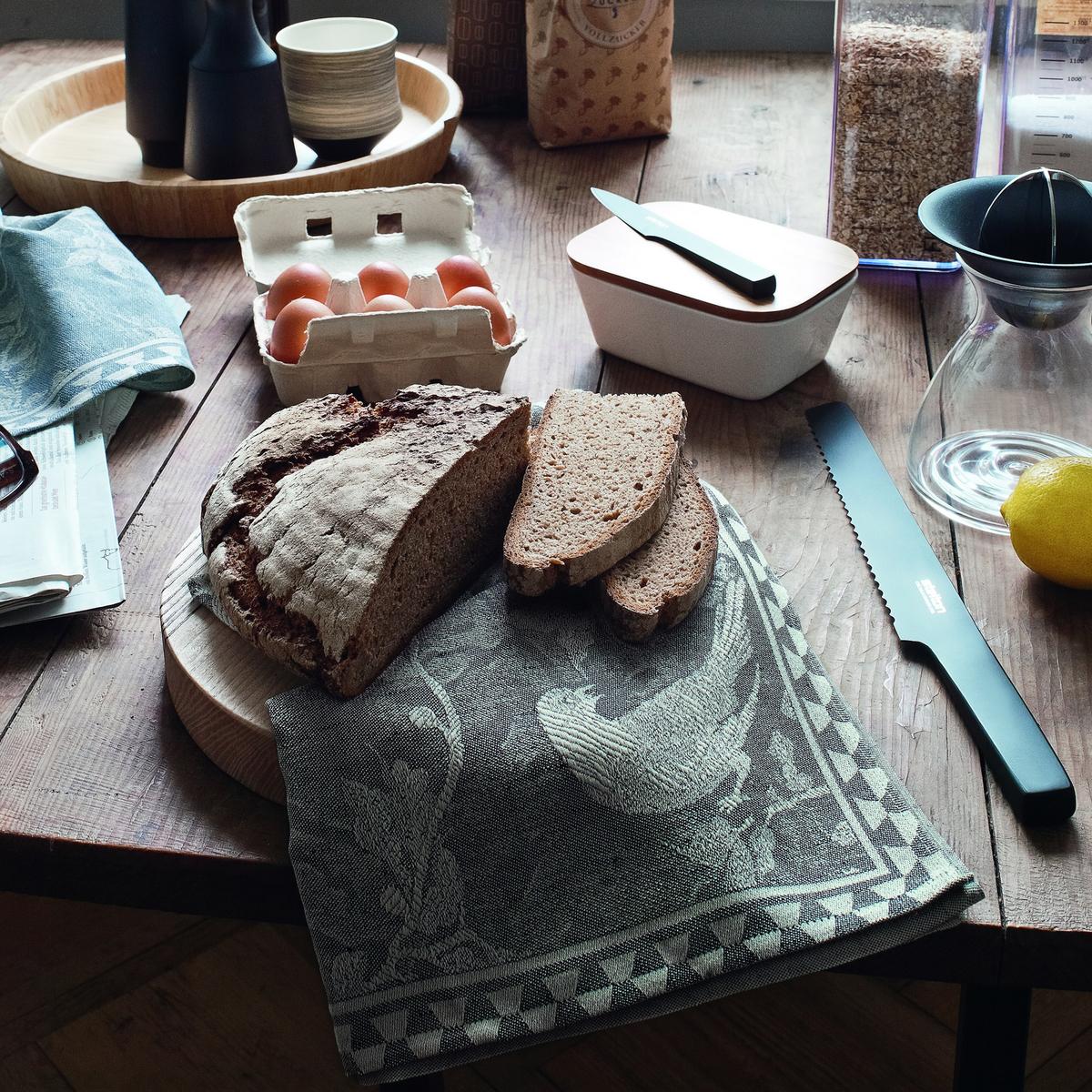 The romantic "Birds" tea towels by Leitner are woven in beautiful patterns from half-linen (i.e. 50% linen and 50% cotton). Due to the high-quality half-linen, the tea towels are very absorbent and particularly suitable for drying. Birds were a popular motif for ornamentation in the Middle Ages and the Renaissance - and with a whole range of symbolic meanings. In this half linen design, the bird pattern is framed as if on the artistic page of a book.