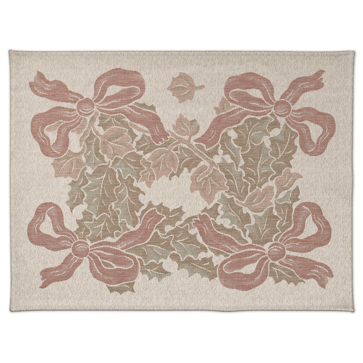 A dreamy Christmas table. The "Garland" table linen in the colourway "Autumn Leaves" by Leitner enchants the Christmas season with its festive magic. Made of pure linen, a timeless garland motif of playful bows and wintry branches shimmers in delicate vintage colours on the lustrous jacquard fabric.