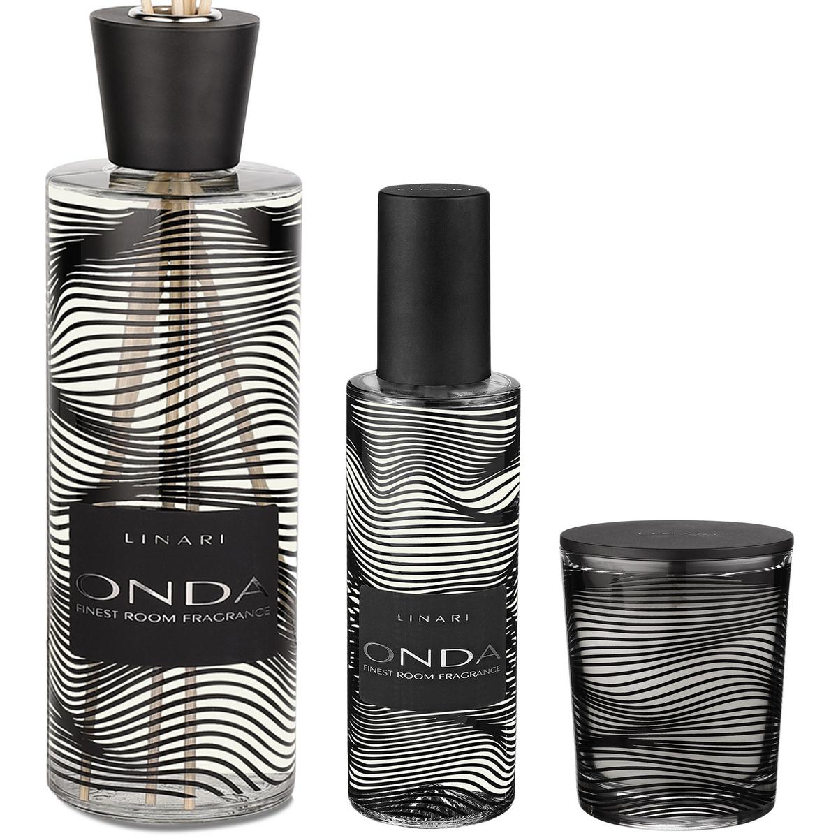 The modern "Graphic Line" collection by Linari consists of the three fragrances "Onda", "Sasso" and "Ebano". The graphic design of the bottles is inspired by nature. "Onda" is translated from Italian as "wave" and interprets the wave movements of the water. Unique fragrances and puristic design distinguish the German label Linari. The hallmark of a Linari room fragrance is its high percentage of genuine perfume and its longevity.