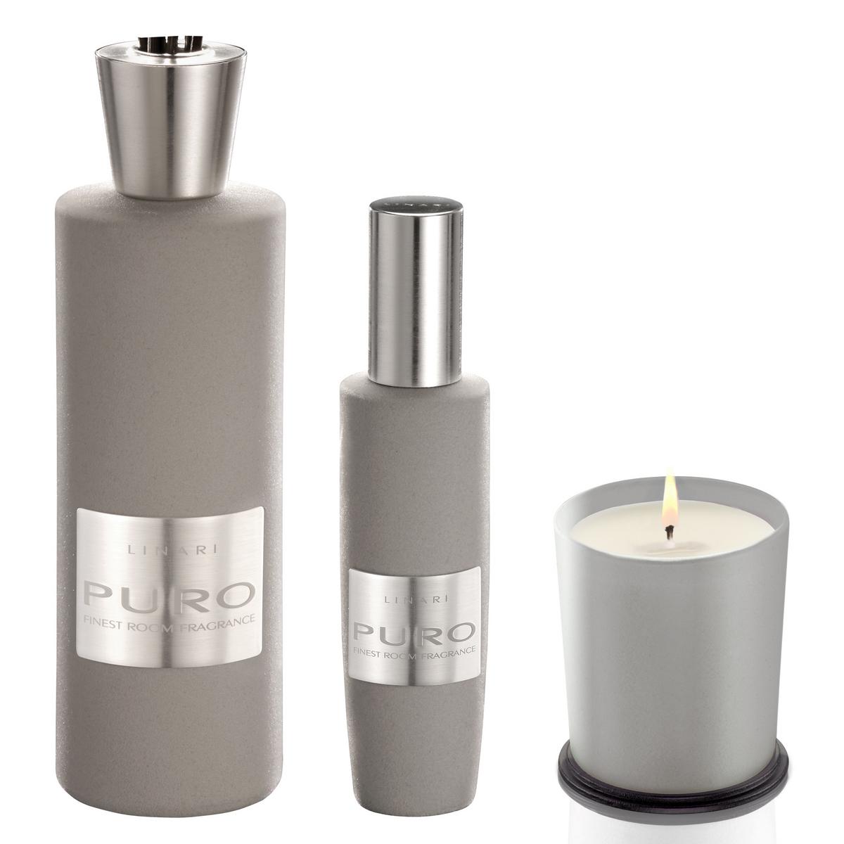 Fragrance Puro by Linari: Intimacy and inspiration - The evolving note of Madagascan vanilla joins a stimulating accord of fruity tangerine, fresh bergamot and lavender. The floral heart note surprises with rose and lily of the valley, entwined with accents of anise and a delicious aroma of fig. Woody notes of sensual santal and cedar merge with white musk and amber, resulting in a woody-leathery base note bound by fine accords of patchouli and cinnamon.