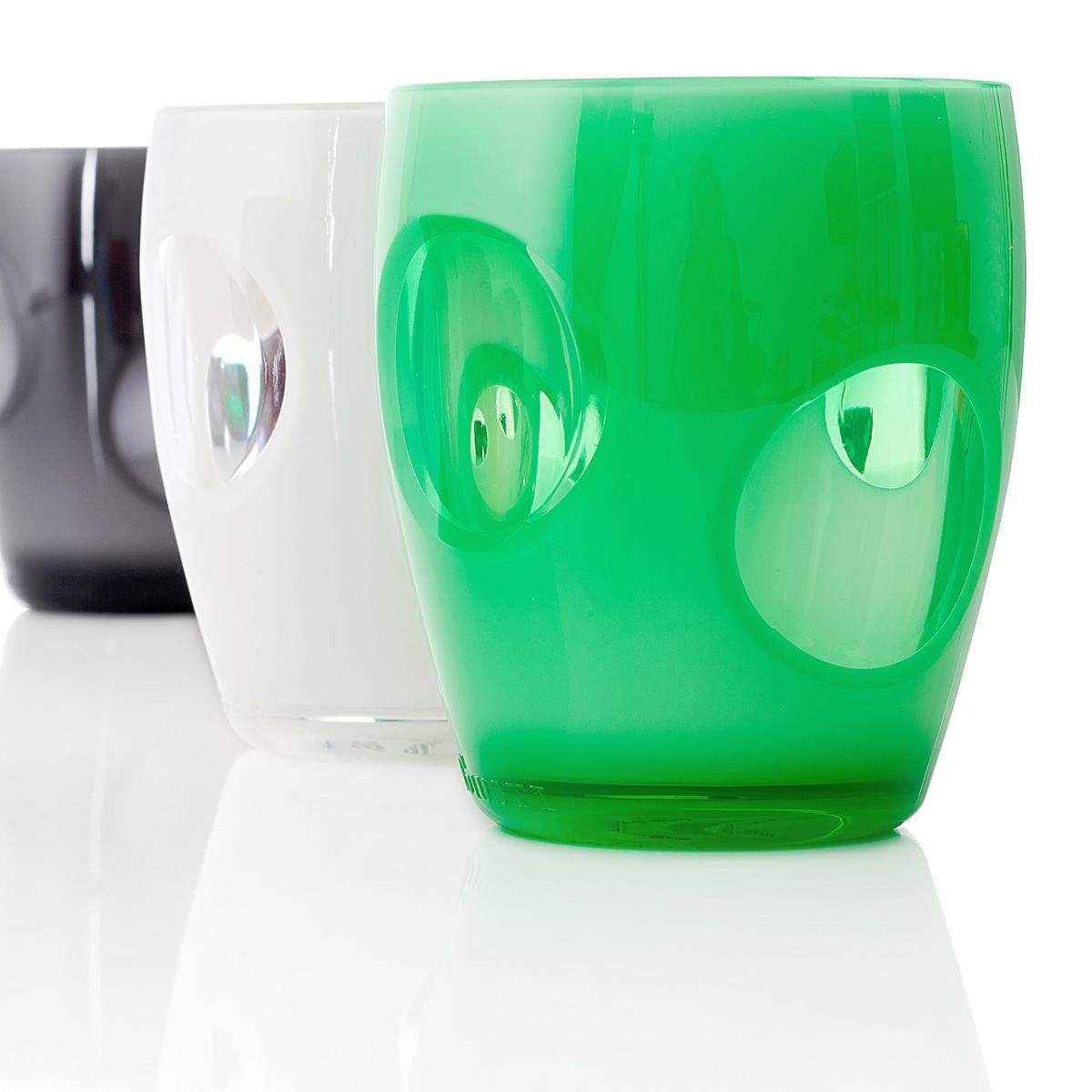 An icon with a view. The "Fisheye" acrylic tumblers by Mario Luca Giusti are a variation on the décor of the popular "Lente" series. Large spheres are engraved into the outside of the acrylic tumblers, which distort light like a fish eye. To enhance the effect, the coloured versions are opaque white on the inside and clear only behind the spheres.