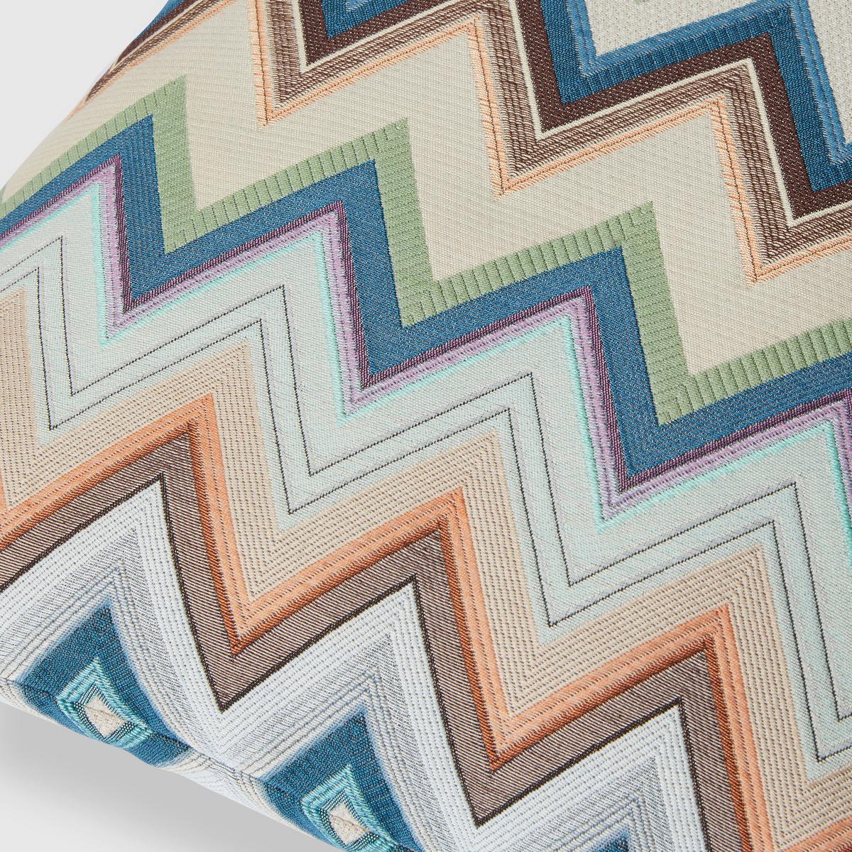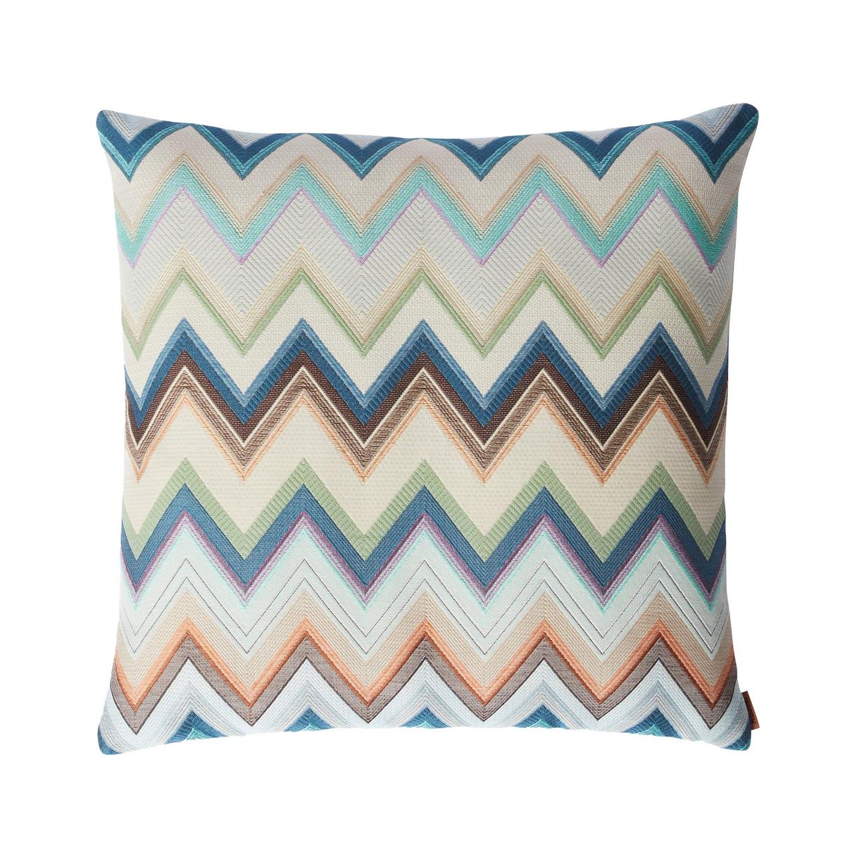 A design full of rich jags and patterned in the shades of beautiful summer colors: this is how the "Agadir" cushion in the colour 150 represents the typical style of Missoni Home. The "Agadir" decorative cushion comes with a filling of goose feathers and goose down.