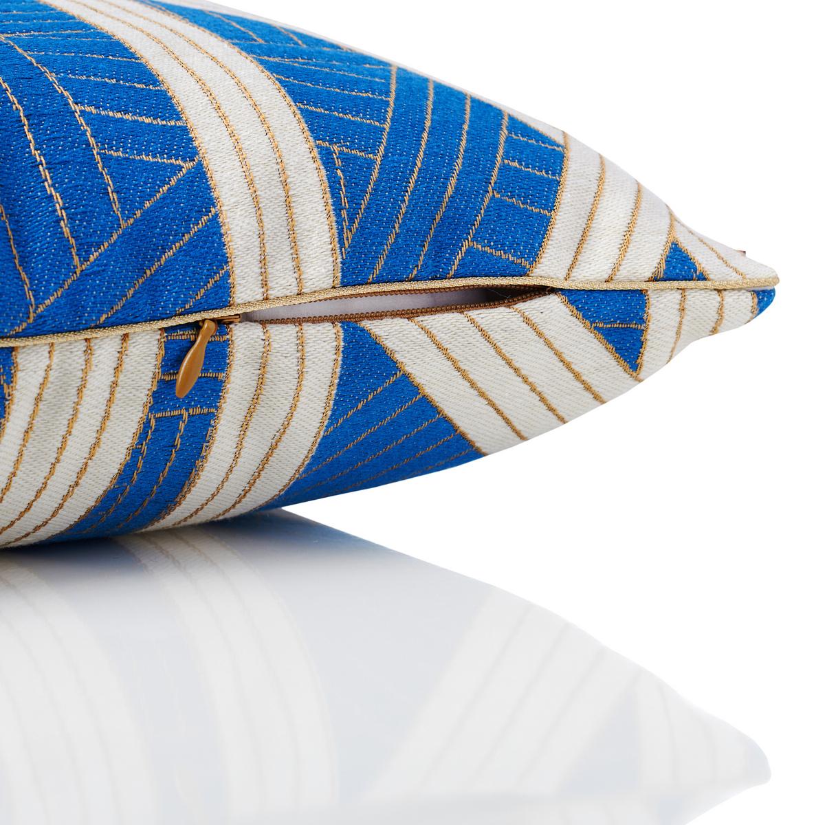Colourful, refined, free. Invite Italian lifestyle in your home with the "Nastri" cushions in blue by Missoni Home. Their geometric design of light beige and bright blue stripes perfectly captures the youthful, casually elegant spirit of Missoni. The cotton-blend jacquard cover is made in Italy and has a concealed zip to look fabulous from every angle.