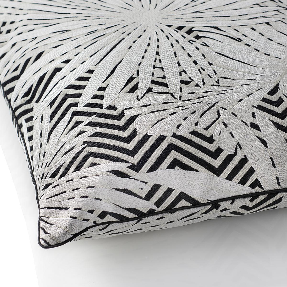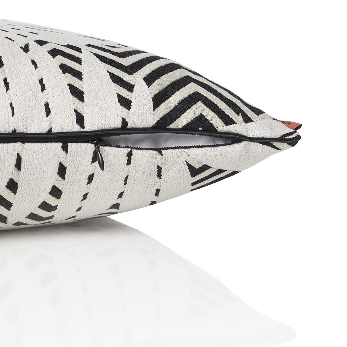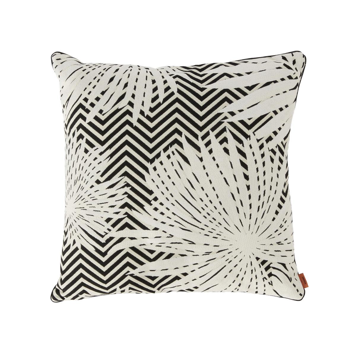 Graphic sophistication meets tactile allure: the "Ombre" cushion by Missoni Home blends the iconic zigzag motif of the renowned Italian design house with dynamic, radiating leaf silhouettes. Its striking black-and-white design instantly turns any sofa, armchair or bed into a true eye-catcher and pairs effortlessly with both colorful and neutral home accessories.