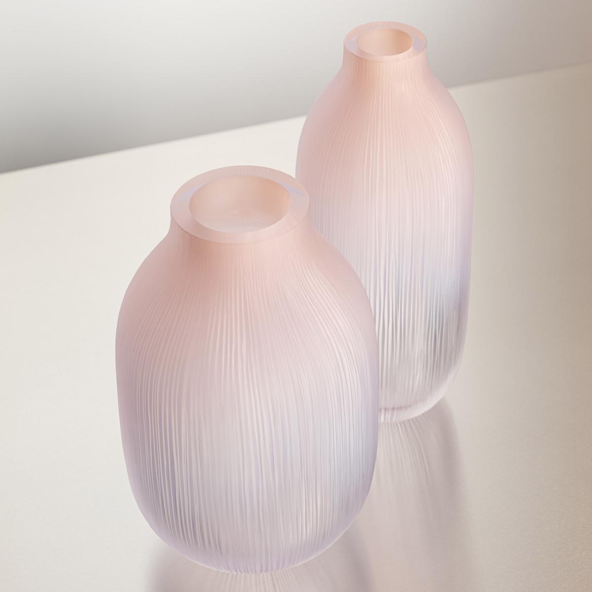 Award-winning design in harmony with nature. The "Fungi" vases by Moser are a poetic reflection of the colours and textures of mushrooms. A graceful apricot hue fills the hand-blown Bohemian crystal glass with a magical warmth and softness. With long, thin grooves, the hand-cut decoration replicates the feel of the fine gills found on the underside of the caps of many mushrooms. A matt satin finish tempts you to touch and explore the fascinating surfaces. The wide vase shape is particularly suitable for round bouquets and the slender shape for narrow, tall arrangements or large individual flowers.