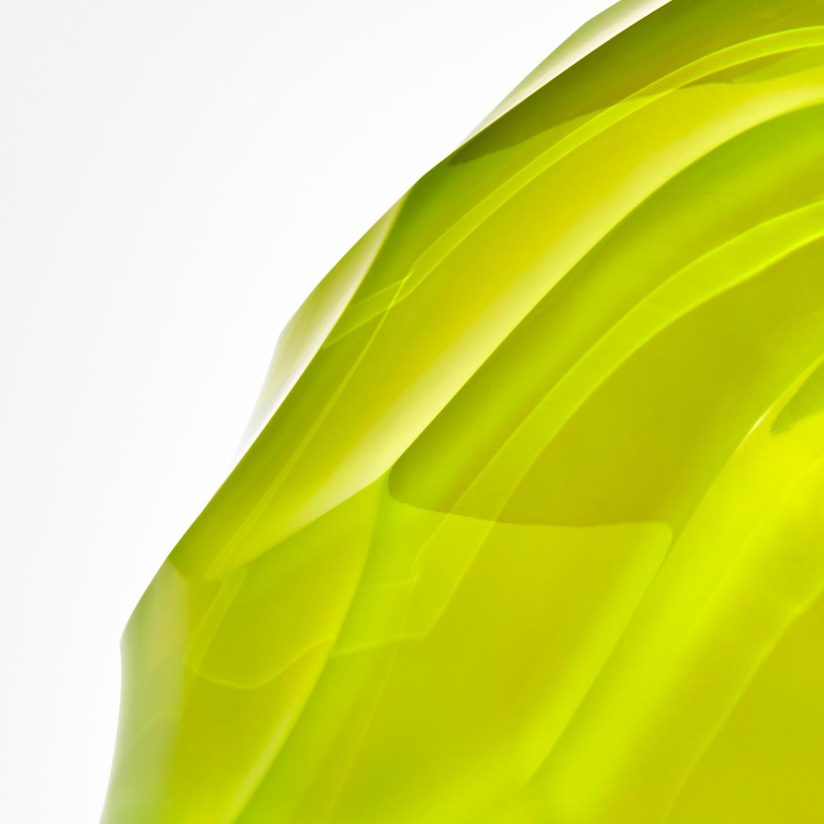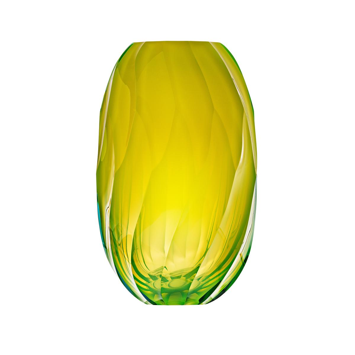 Infinite movement, infinite light. The "TwinSpin" vase is a technical masterpiece by the legendary Czech glassworks Moser. The design by Jan Čtvrtník combines two opposing spirals that meet in the middle and merge into one. The highly complex pattern demands the full expertise of the artisans and pushes the boundaries of crystal cutting. A unique colour scheme of beryl green and opal yellow enhances the hypnotic effect of the sweeping cuts. Intense, dynamic, and vibrant, the "TwinSpin" vase fills its surroundings with irresistible energy.