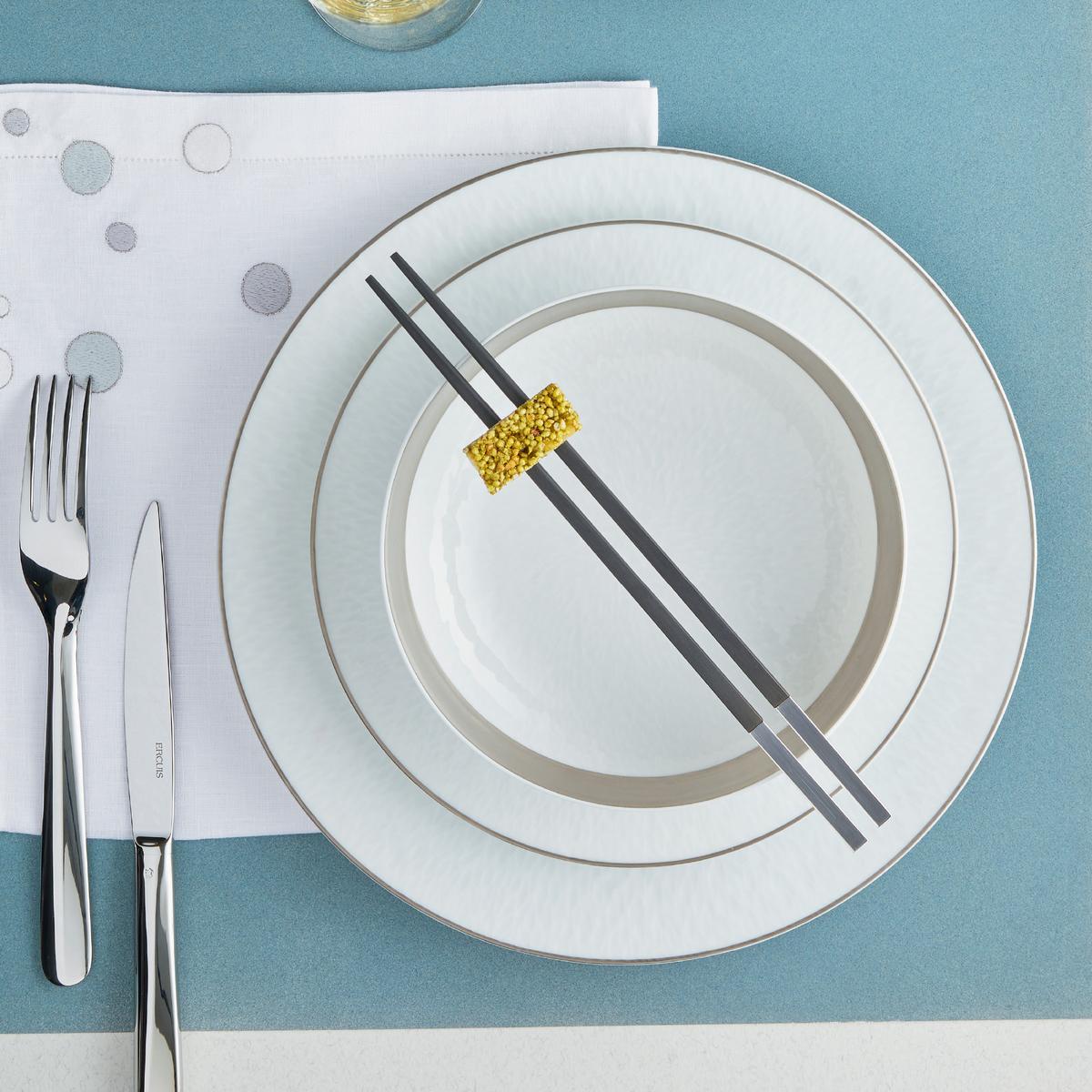 The "Minéral Platinum" dinnerware from French porcelain manufacturer Raynaud is the refined creation of Thierry Cheyrou.