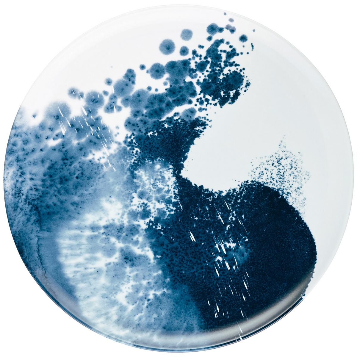 Explore the deepest abysses of the sea with the "Abysses" dinner service by Raynaud. Indigo blue decorations made up of dynamic brushstrokes transform the pure white Limoges porcelain into unfathomable underwater worlds. Sometimes dynamic and dark like raging currents, sometimes soft and light like misty coastal landscapes, the designs that extend to both sides of the dinnerware pieces allow endless maritime associations.