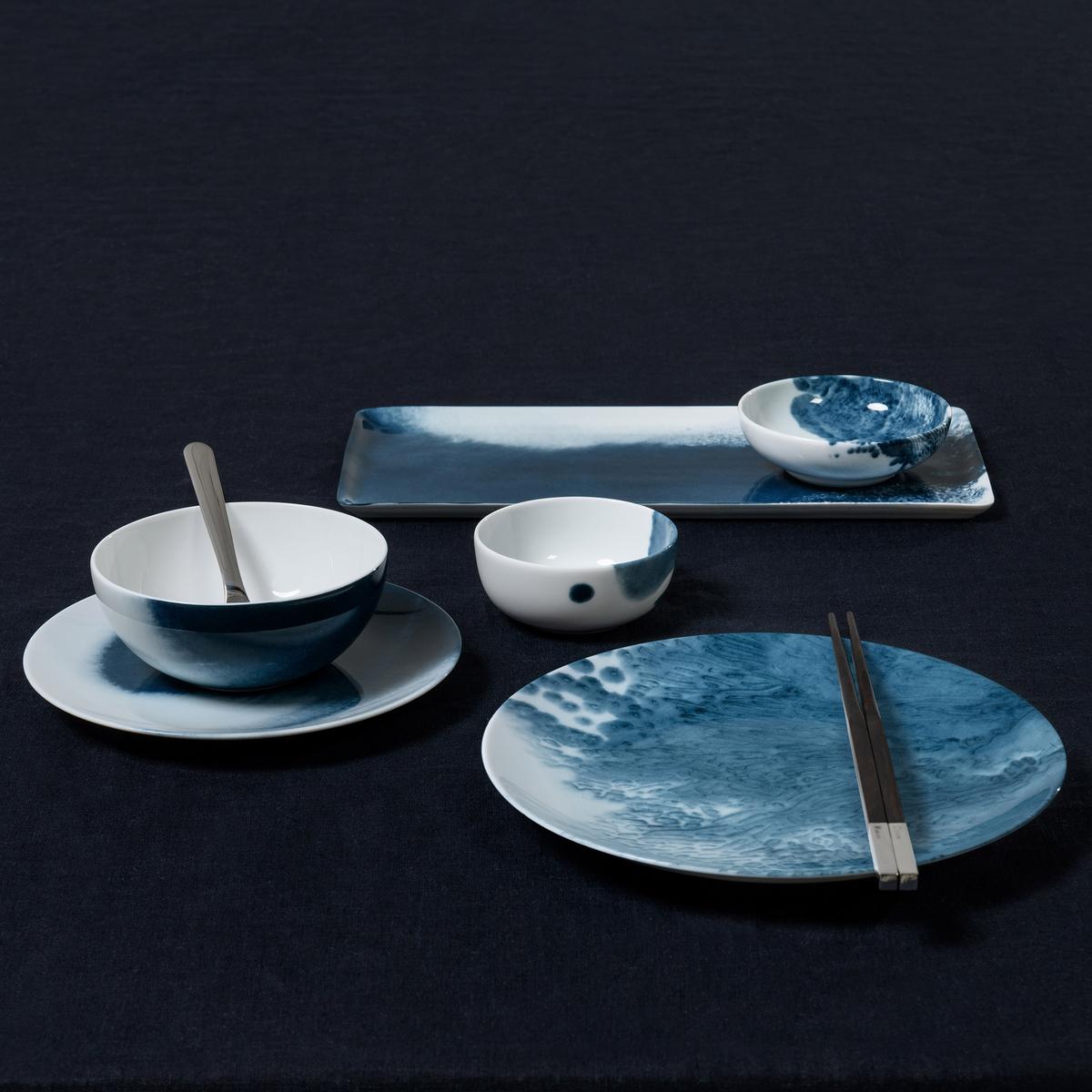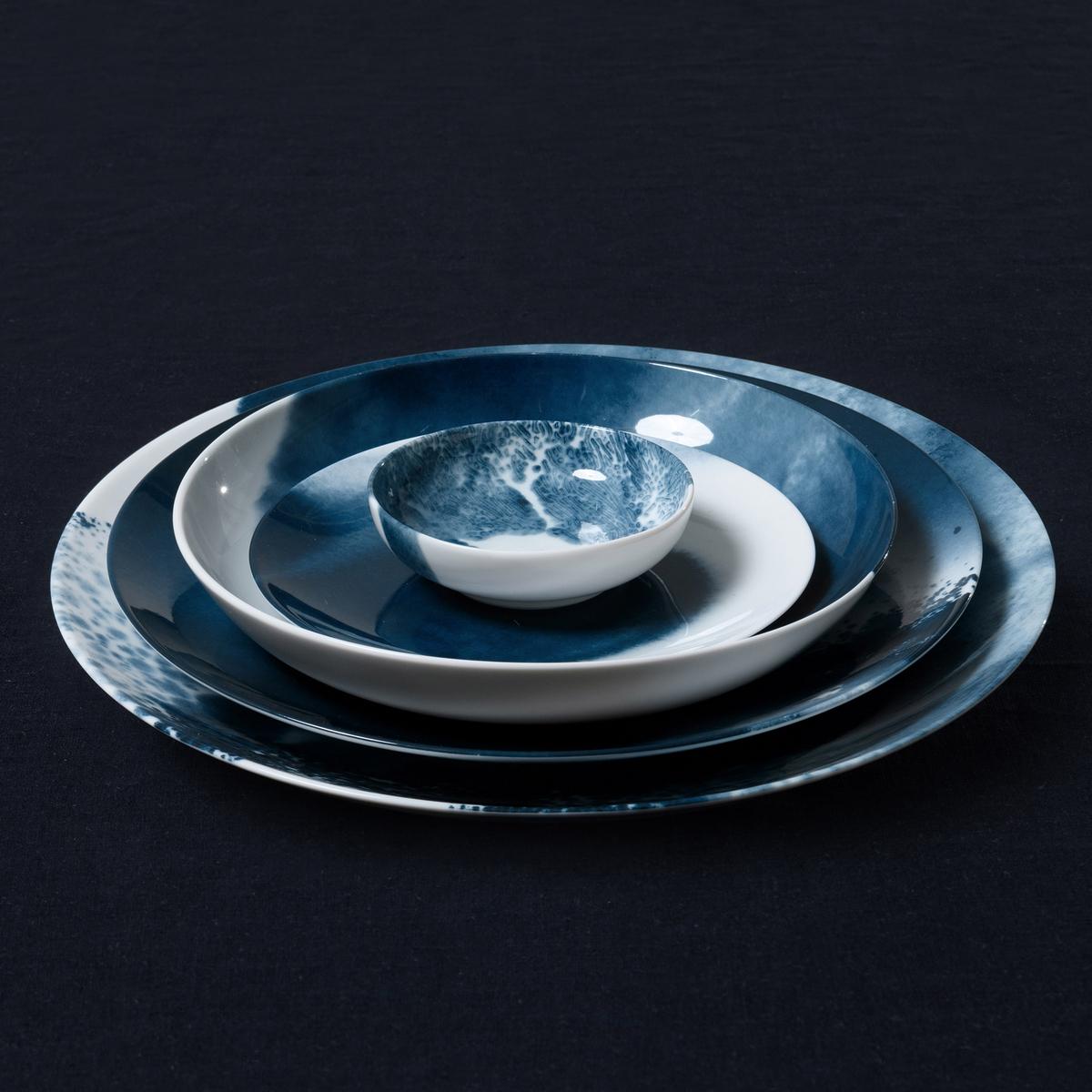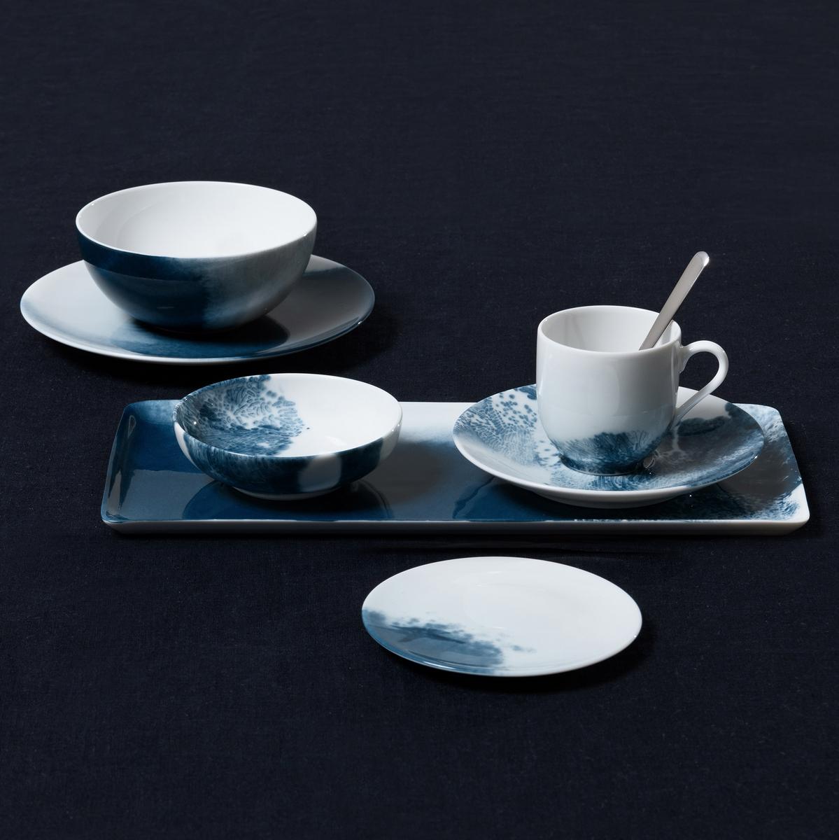Explore the deepest abysses of the sea with the "Abysses" dinner service by Raynaud. Indigo blue decorations made up of dynamic brushstrokes transform the pure white Limoges porcelain into unfathomable underwater worlds. Sometimes dynamic and dark like raging currents, sometimes soft and light like misty coastal landscapes, the designs that extend to both sides of the dinnerware pieces allow endless maritime associations.