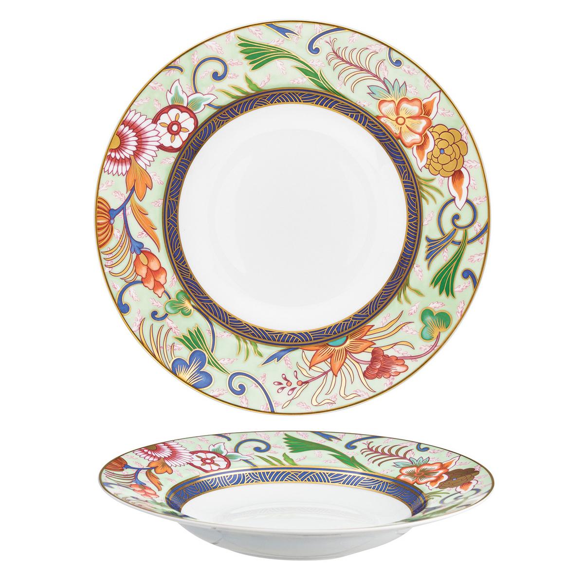 Designer Olivier Maillefer created the "Imari" decorations as watercolour paintings. Free from rigid structures and strict symmetries, he created new floral motifs of graceful elegance and cheerful spontaneity for each piece in the extensive collection. Generous fine gold applications bring the 17 different colours of the floral designs to life. Deep blue plates covered in golden patterns form a fantastic contrast to the colourful floral splendour.