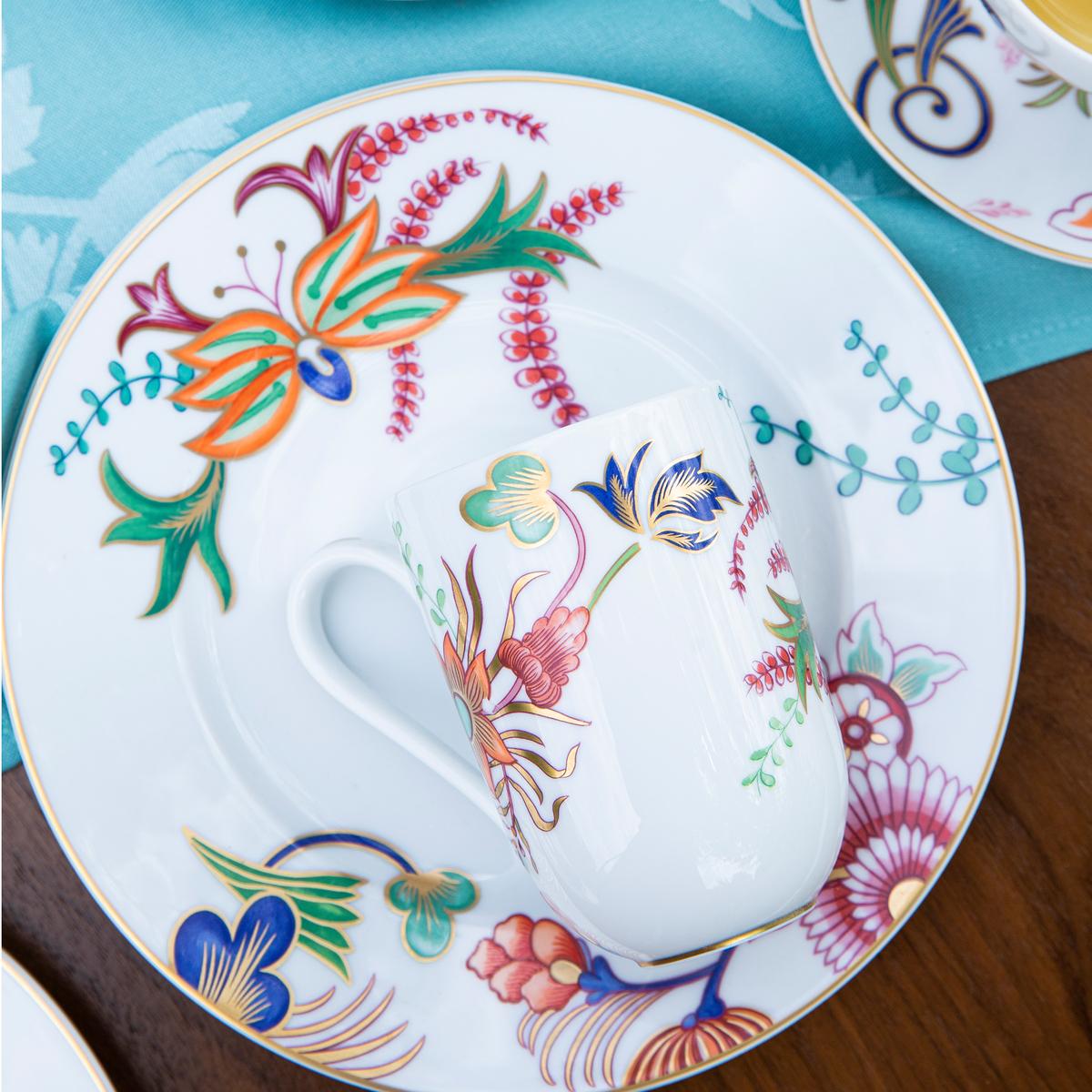 The Raynaud porcelain manufactory enchants connoisseurs and professionals alike with refined Limoges porcelain full of poetic charm and elegance. The elaborate decorations are printed with the utmost precision and applied to the fine porcelain by hand. Discover the cosmopolitan poetry of porcelain by Raynaud with the "Imari" dinner service.