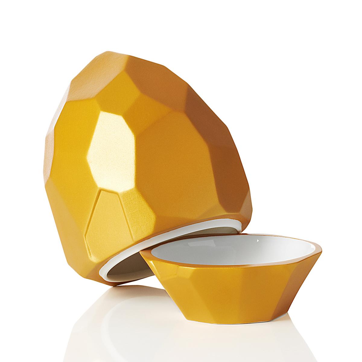 The special thing about the "Pépites Irisées" rocks are the unique shimmering colours, which are created through a very elaborate manufacturing process. When light falls on the coloured sections, the textured surface and the use of metallic pigments create a particularly beautiful play of matte and shiny sections. The "Pépites Irisées" rocks are handcrafted from the finest Limoges porcelain at the French Raynaud manufactory.