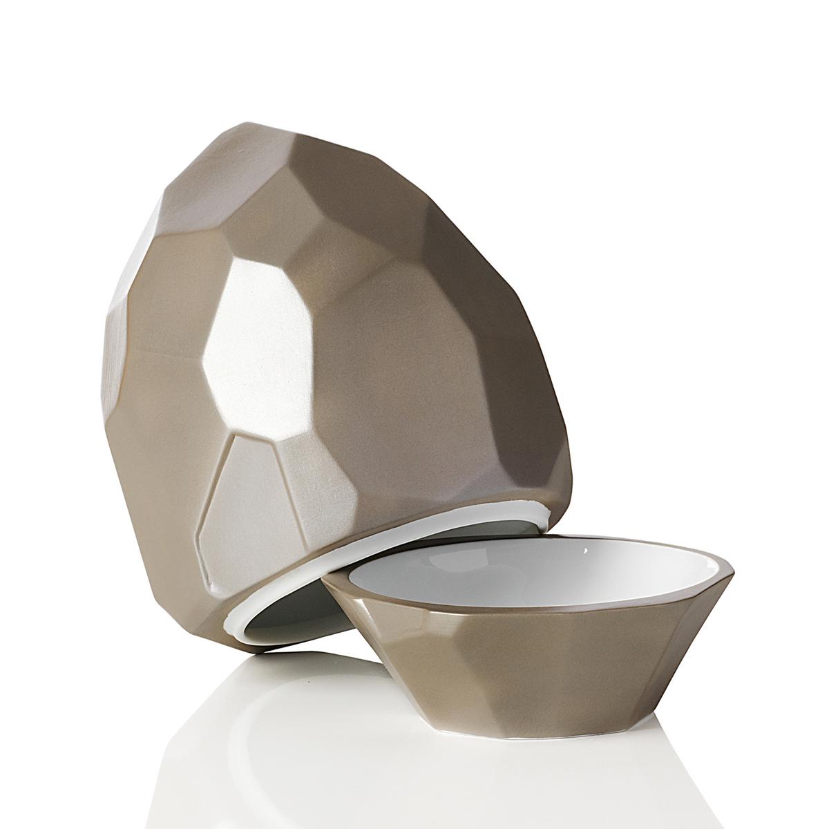 Rock the table: The "Pépites Irisées" rocks by Raynaud are a deep plate and matching cloche in one. The rock pieces are only glossily glazed on the inside. On the outside, they have a velvety matt texture that shimmers in iridescent colours. Raynaud's "Pépites" collection was created by Mariella Schwarz Montiel to serve refined delicacies and to better support the creativity of chefs and hobby chefs.