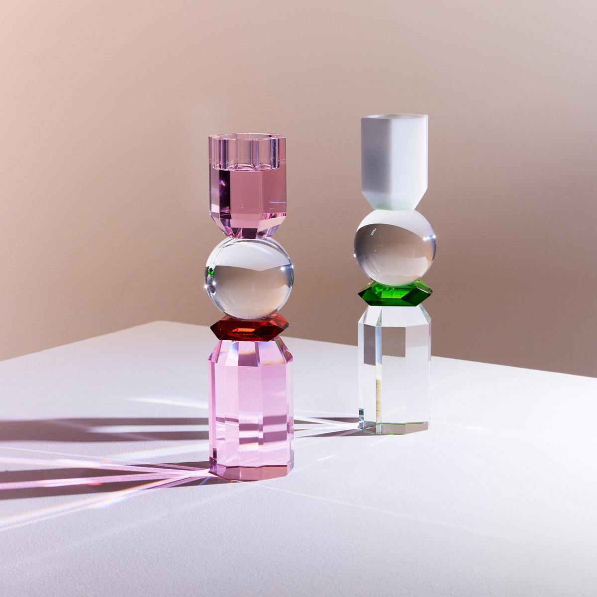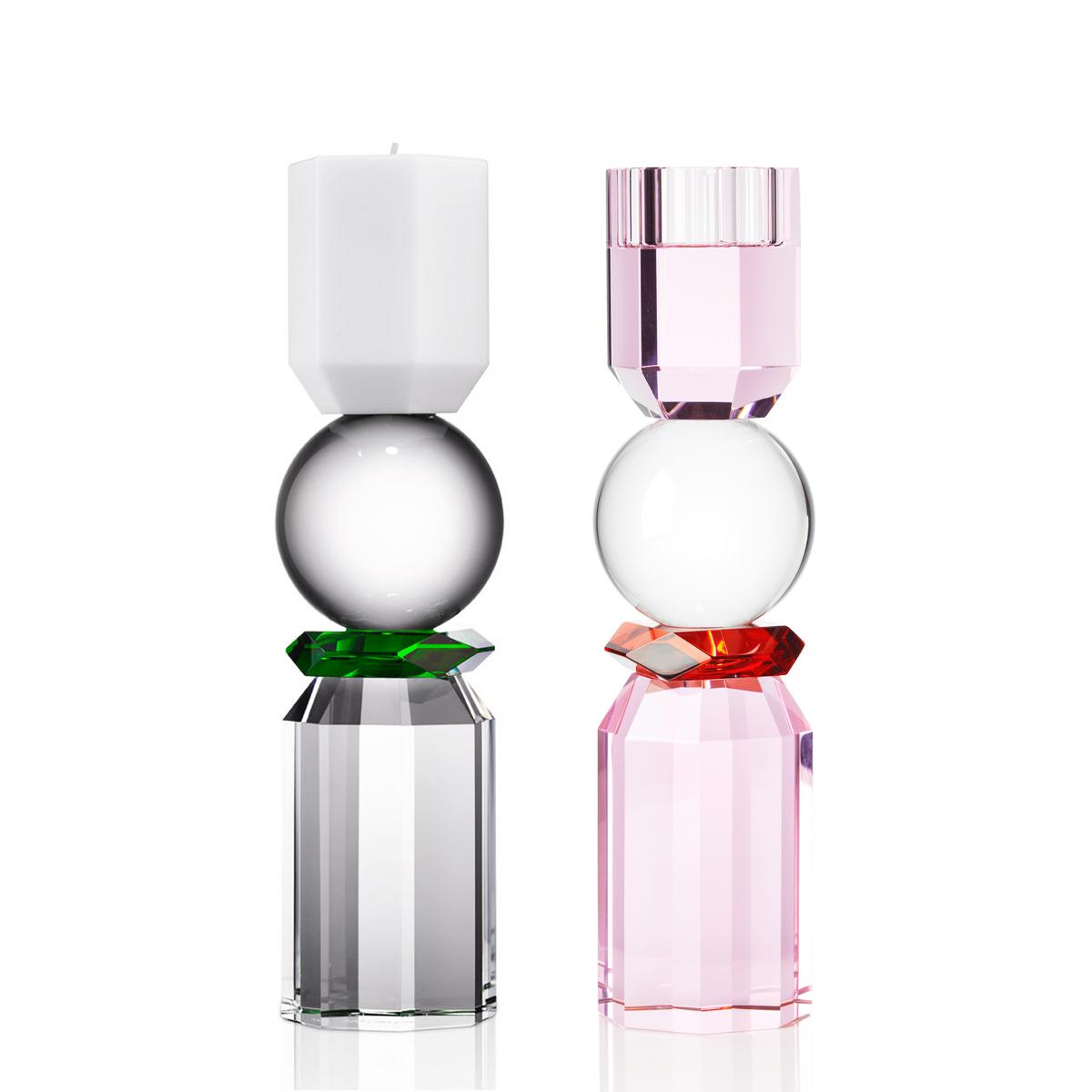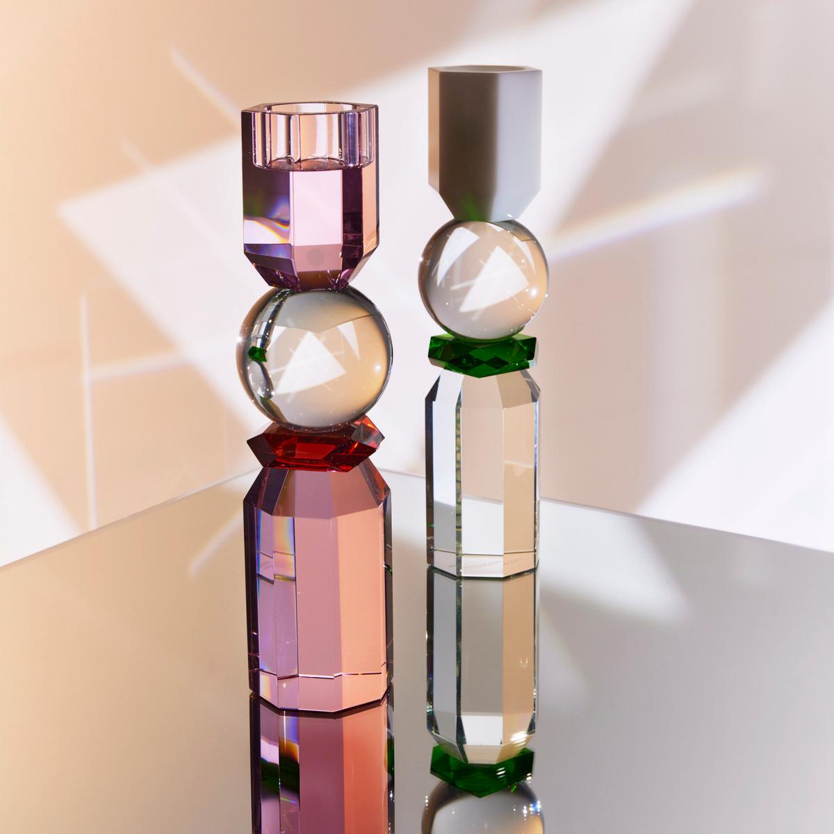 The clear lines are accentuated by vibrant color details transforming the "Memphis" tea light holder into a luxurious design object. Its dazzling crystal facets combined with bold hues bring a touch of elegance and contemporary sophistication to any interior.