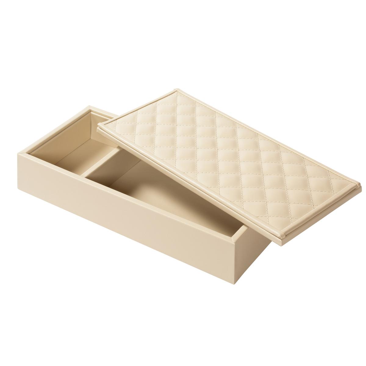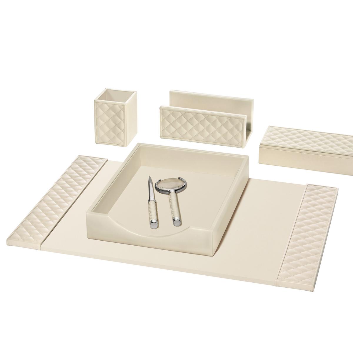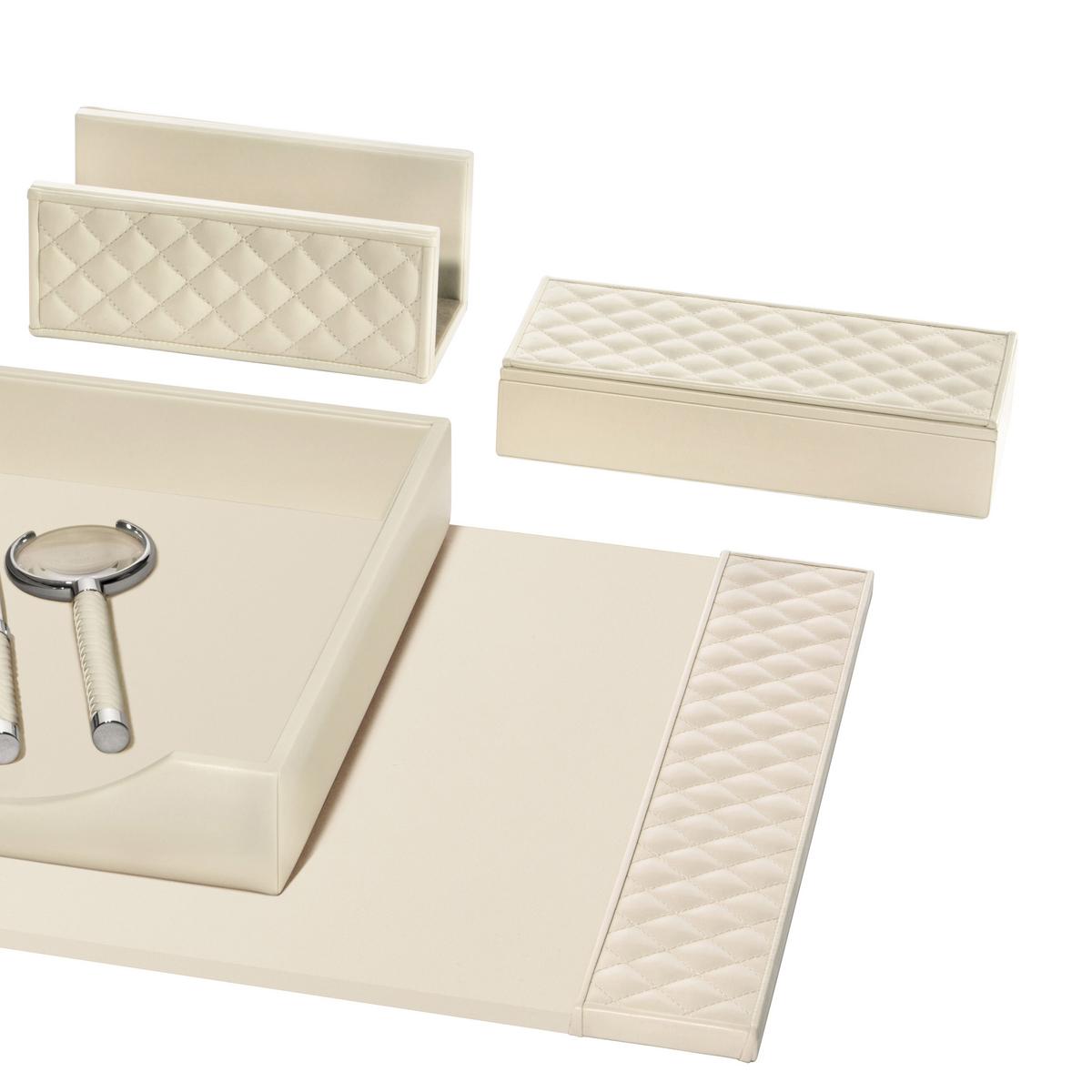 Create an incomparable working ambience with the "Vanity" office accessories in ivory by Riviere. The elegant accessories are clad in butter-soft, padded and quilted nappa leather from the best tanneries in Italy. Made purely by hand, the flawless finish of the office accessories underlines the exceptional quality of the carefully selected leather.