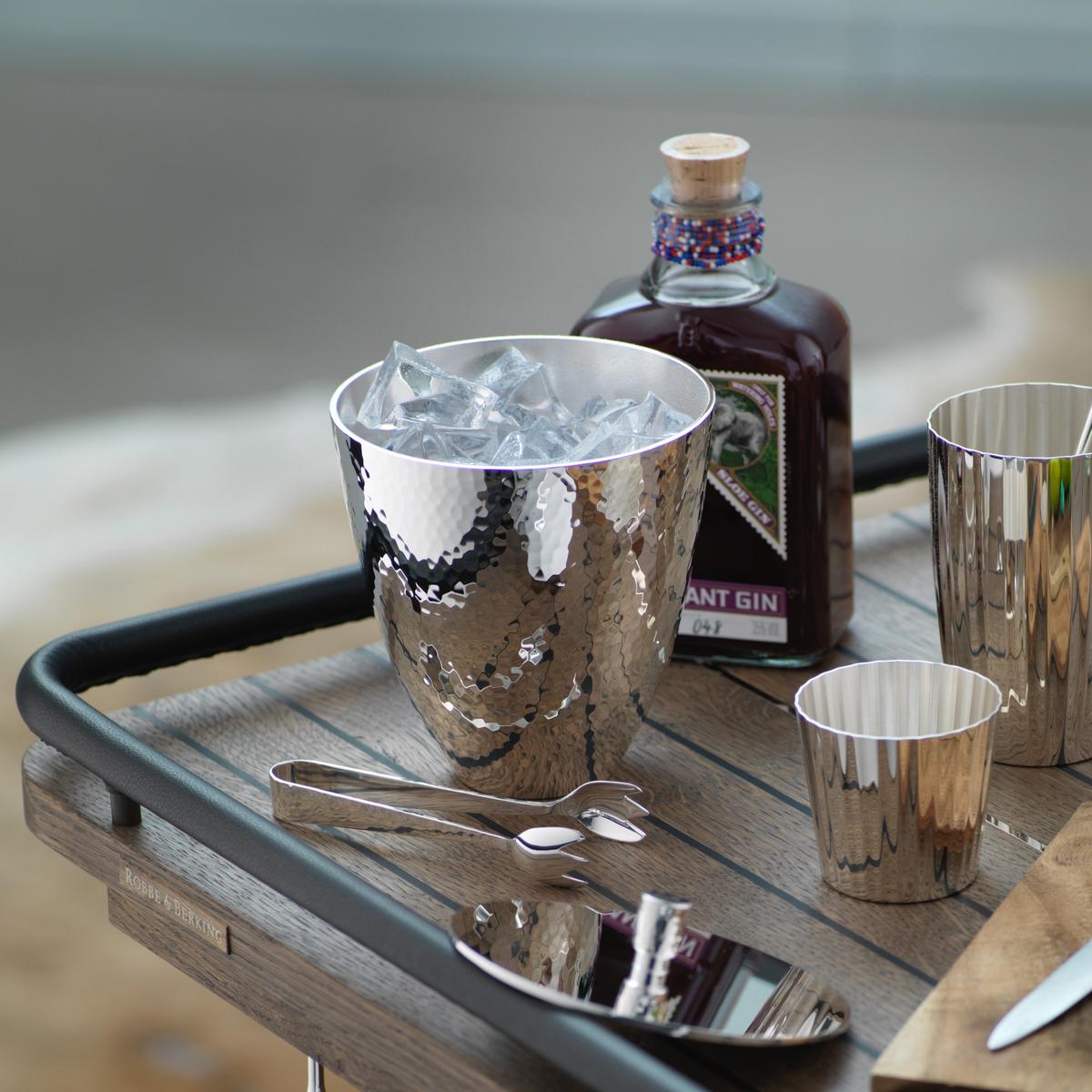 "Martelé" comes from the French verb marteler, "to hammer" and describes the fine hammering technique with which Robbe & Berking has created these enchanting beautiful bar accessories. The soft curves on the surface reflect the light in a hundred different ways.